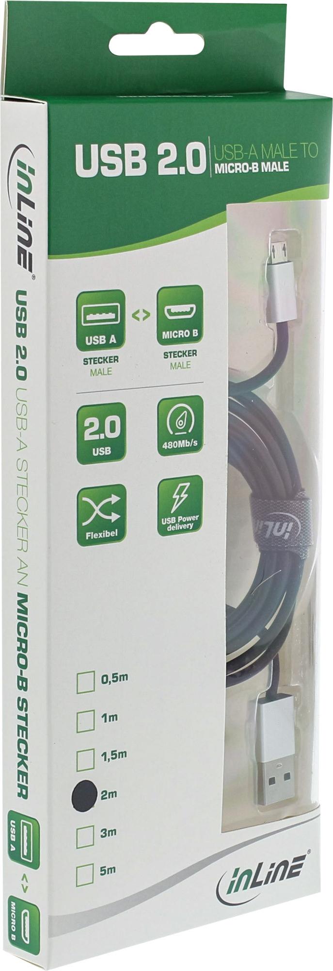 InLine® High Speed Micro USB 2.0 ( Universal Serial Bus ) ultraflexibles Kabel mit hochwertigen aluminiumbeschichteten Steckern, ideal für Smartphones, Tablets, externe USB-Festplatten, externe USB-Grafikkarten und andere Peripheriegeräte.• Entspricht den USB 2.0-Spezifikationen