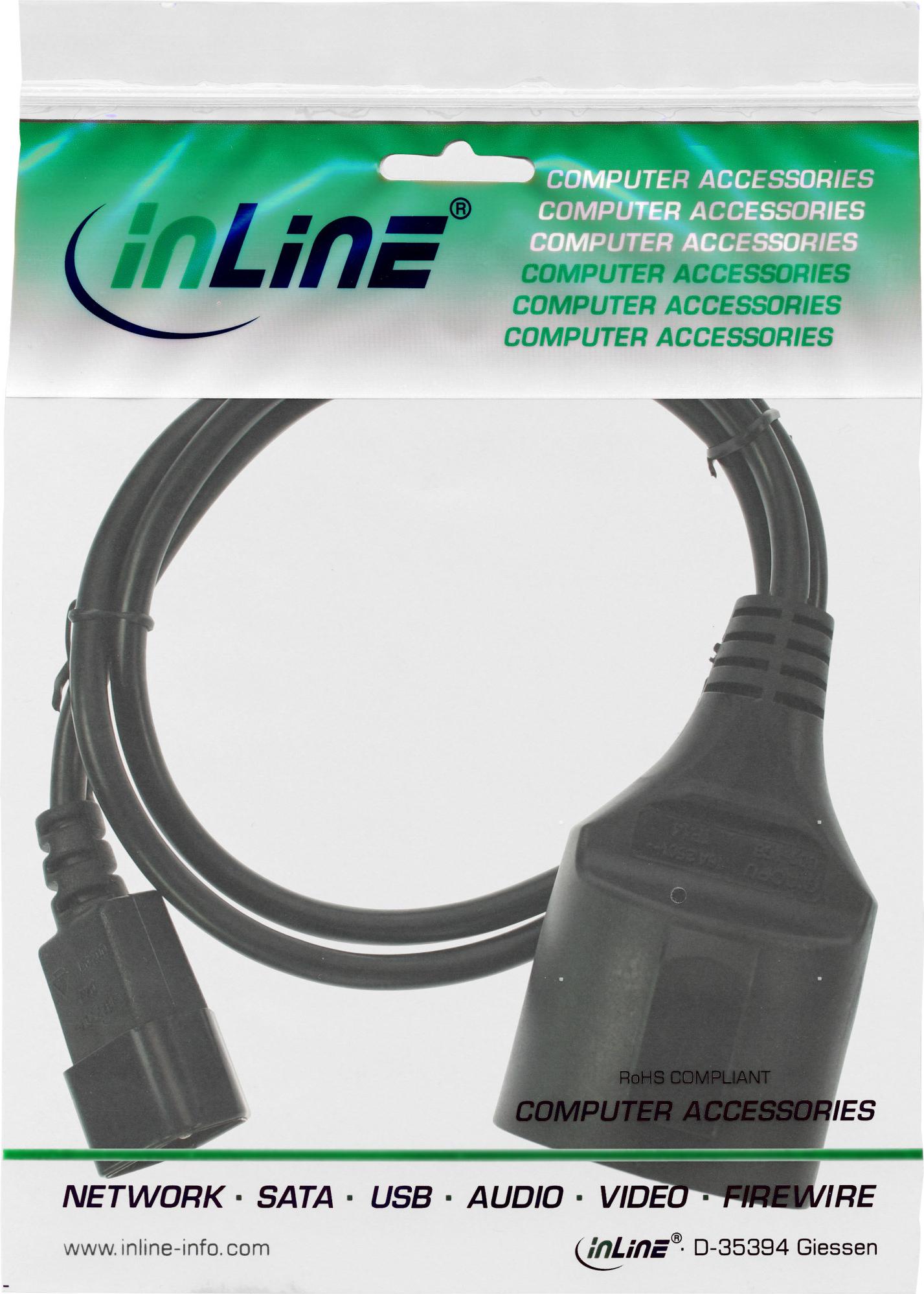 InLine - Stromkabel - IEC 60320 C14 bis CEE 7/3 - 10 A - 50cm - Schwarz (16659K)