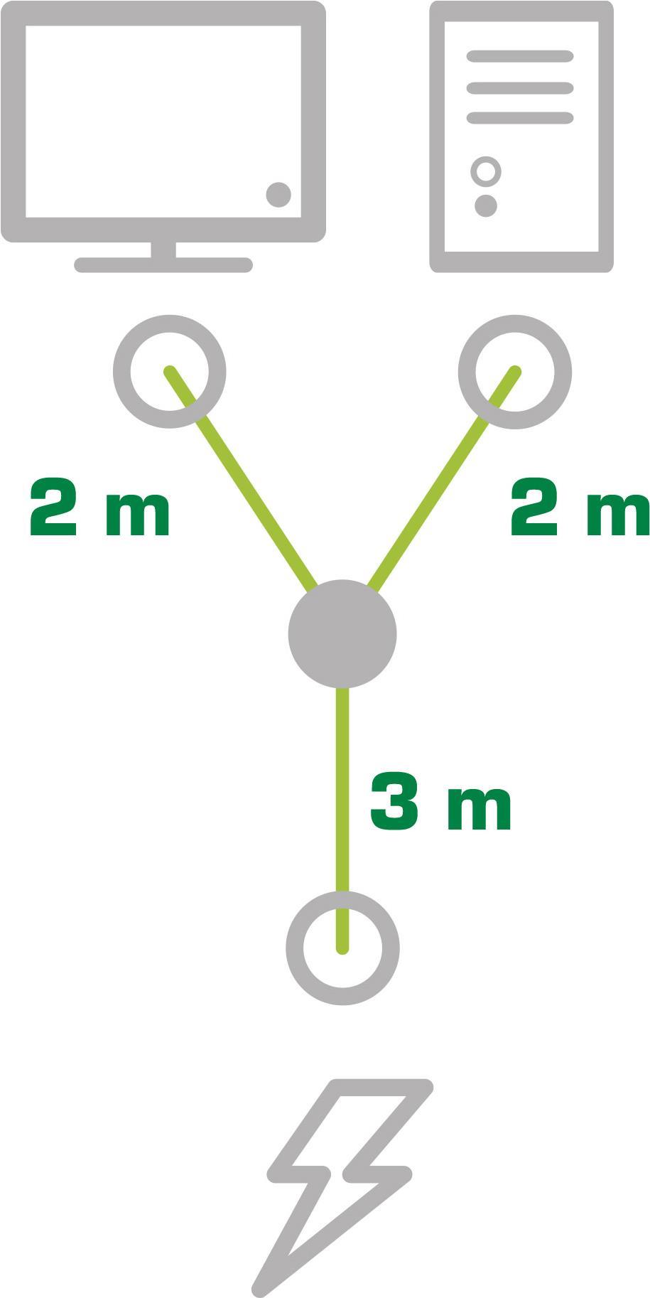 Ermöglicht den Anschluß von 2 Geräten an eine Steckdose.