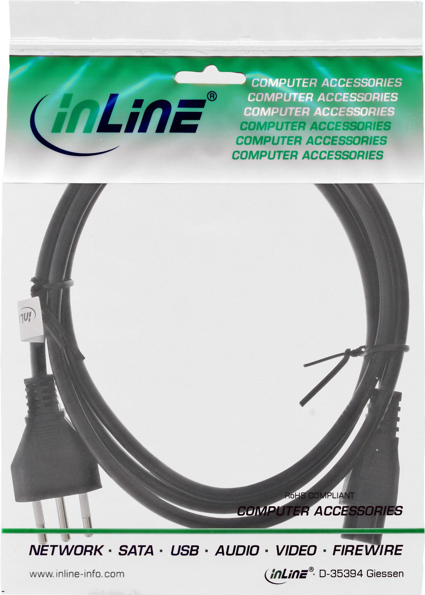 InLine - Stromkabel - IEC 60320 C5 bis CEI 23-16/VII (M) - 2,0m - Schwarz (16656S)