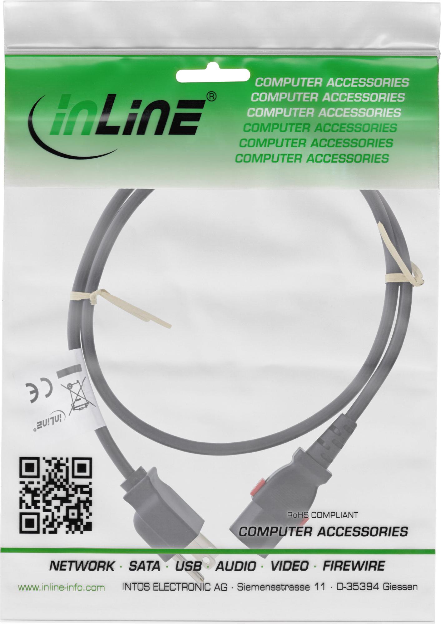 InLine Netzkabel Netzstecker USA auf Kaltgerätestecker C13 verriegelbar - Kabel - Audio/Multimedia (16953U)