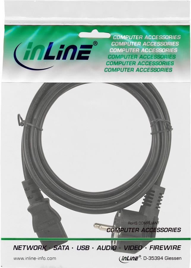 InLine - Stromkabel - CEE 7/7 (S) gewinkelt bis IEC 60320 C13 - 50cm - Schwarz (16651M)