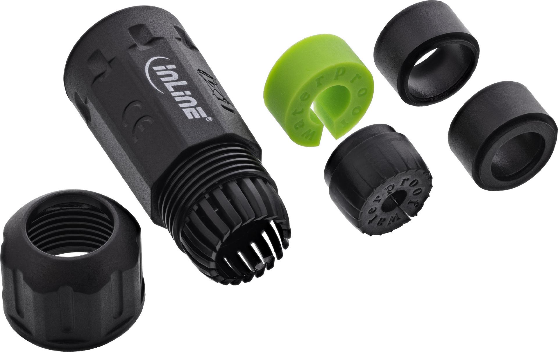 InLine Netzkabelkupplung IP68 3-polig 4-Wege M20 schwarz (69927V)