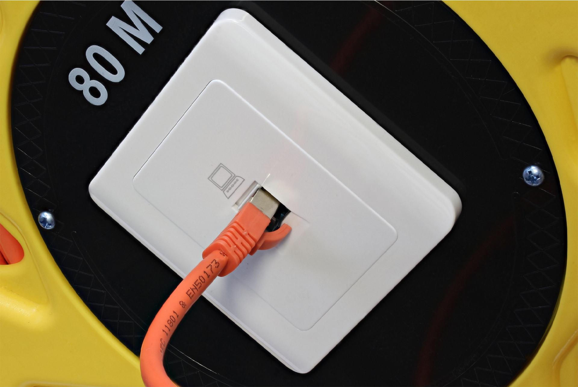 Kabeltrommel zur Verlängerung von Ethernetstrecken für temporäre Kabelanlagen bei Veranstaltungen, Vorführungen, Schulungen, Konferenzen, Übertragungswagen, Messen und bei Notfällen. Einfach Kabel abrollen und Patchkabel sowie Netzwerkgeräte miteinander verbinden.• Komplett mit Cat.7 S/FTP-PiMF 1000MHz Verlegekabel