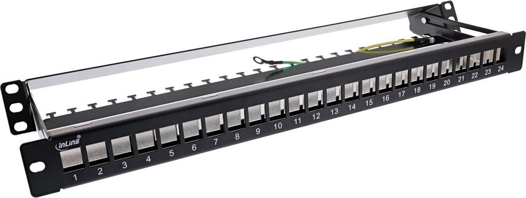 InLine® Patchfeld 24-fach, Keystone Snap-In Leerblech Patchpanel, 48,26cm (19"), 1HE, schwarz (76824K)