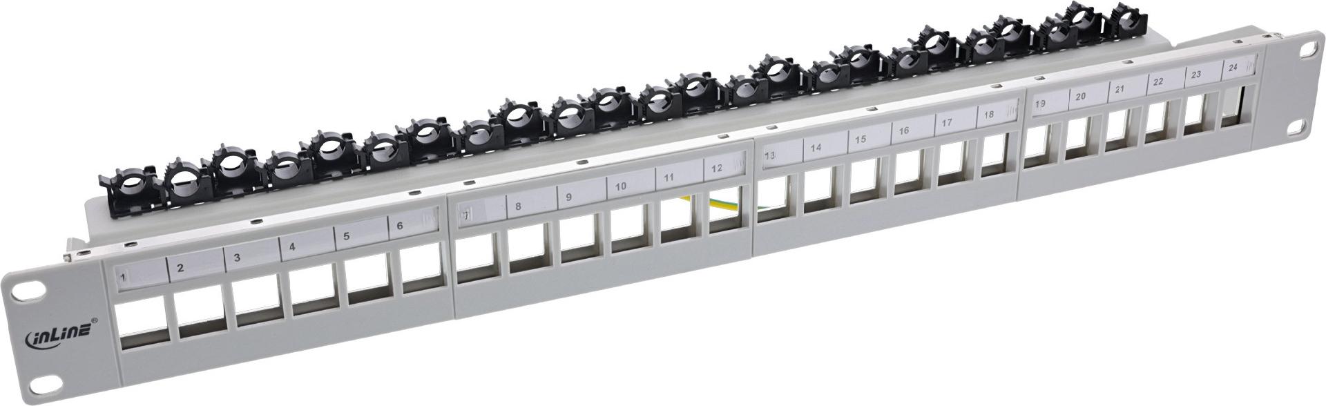 • InLine Patchfeld 24-fach Keystone Leerblech Patchpanel 48,30cm (19") 1HE lichtgrau (76824O)