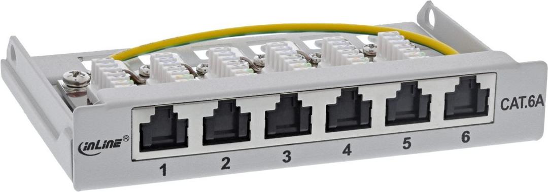 InLine® Patchfeld Cat.6A 0,5HE 6-fach, für Tisch/Wand/Hutschiene, mit Staubschutz, grau (76816A)