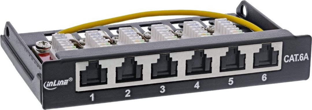 InLine® Patchfeld Cat.6A 0,5HE 6-fach, für Tisch/Wand/Hutschiene, mit Staubschutz, schwarz (76816B)
