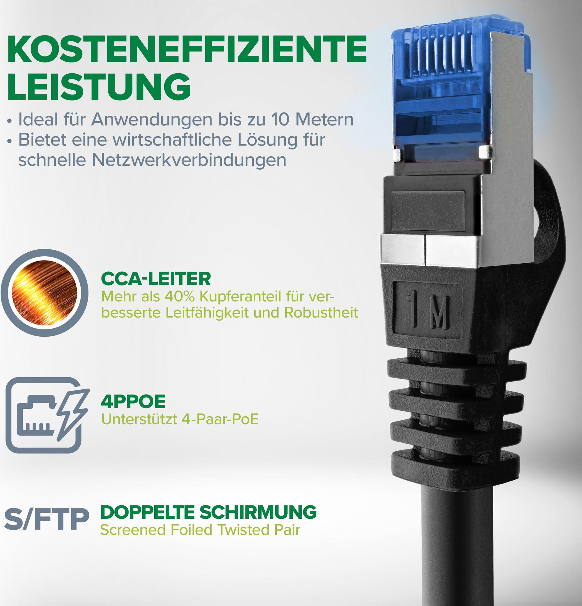 • Kosteneffiziente Netzwerklösung mit hochwertiger CCA-Legierung: 40 % Kupferanteil für verbesserte Leitfähigkeit und reduzierte Signalverluste.