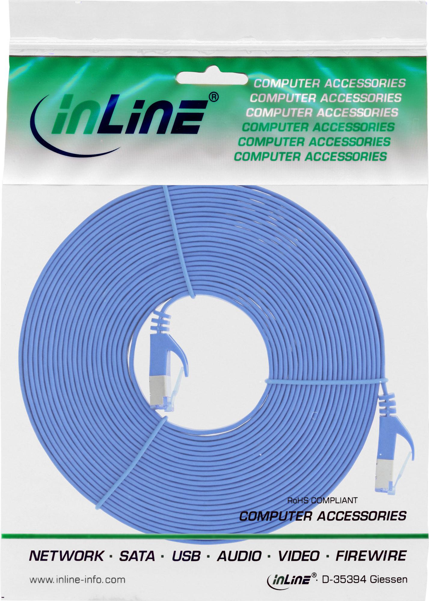• InLine® Patchkabel flach, U/FTP, Cat.6A, blau, 10m (71800B)