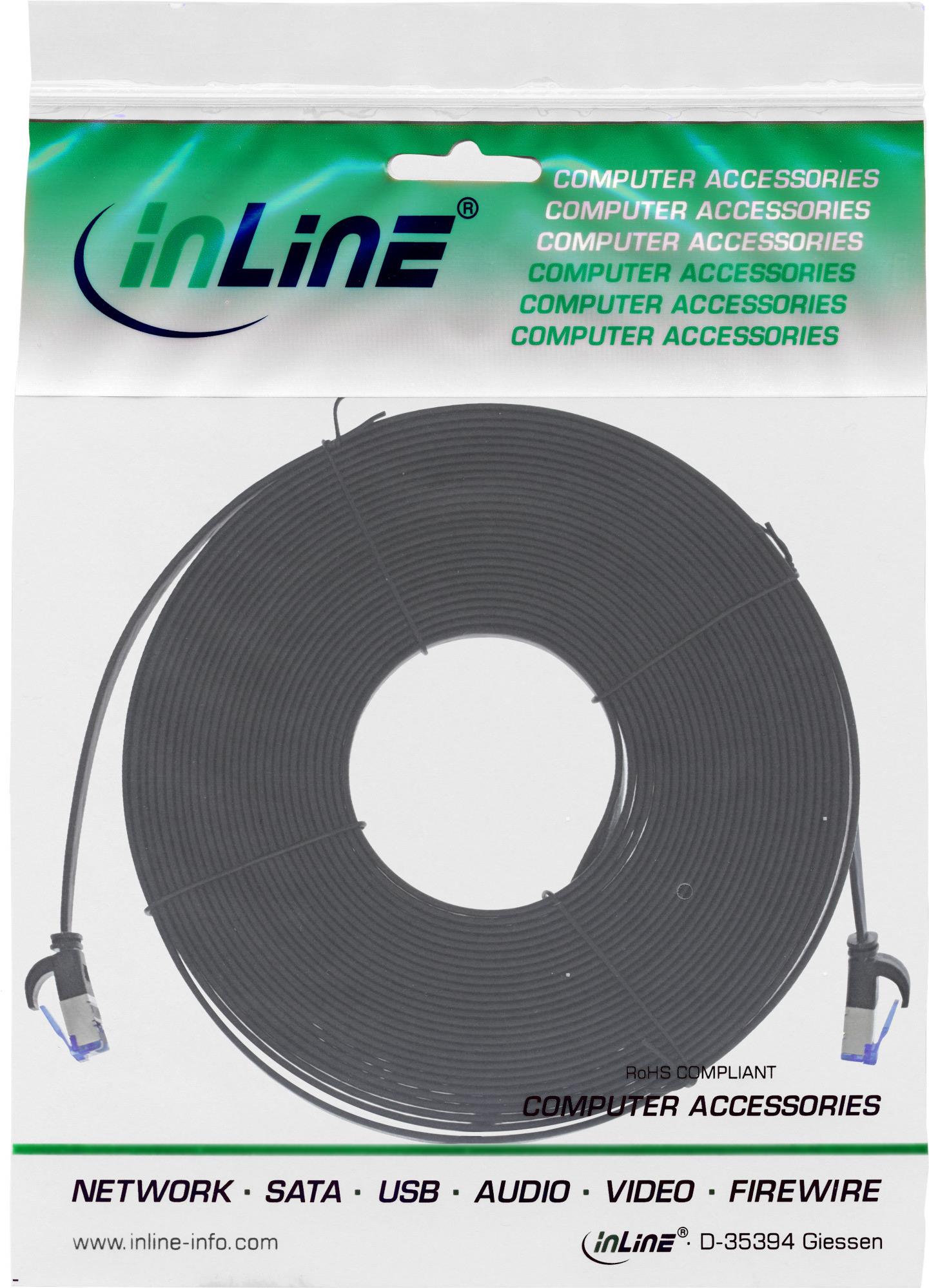InLine® Patchkabel flach, U/FTP, Cat.6A, TPE halogenfrei, schwarz, 5m (75705S)