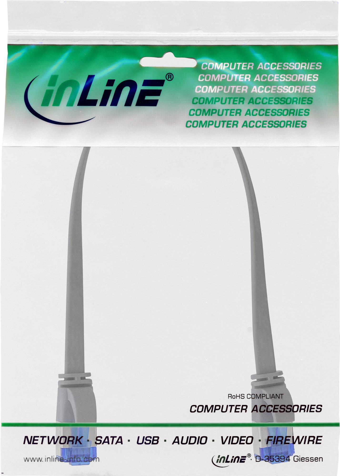 INLINE - Patch-Kabel - RJ-45 (M) zu RJ-45 (M) - 25 cm - U/FTP, PiMF - CAT 6a - halogenfrei, geformt, ohne Haken, verseilt, flach - Grau
