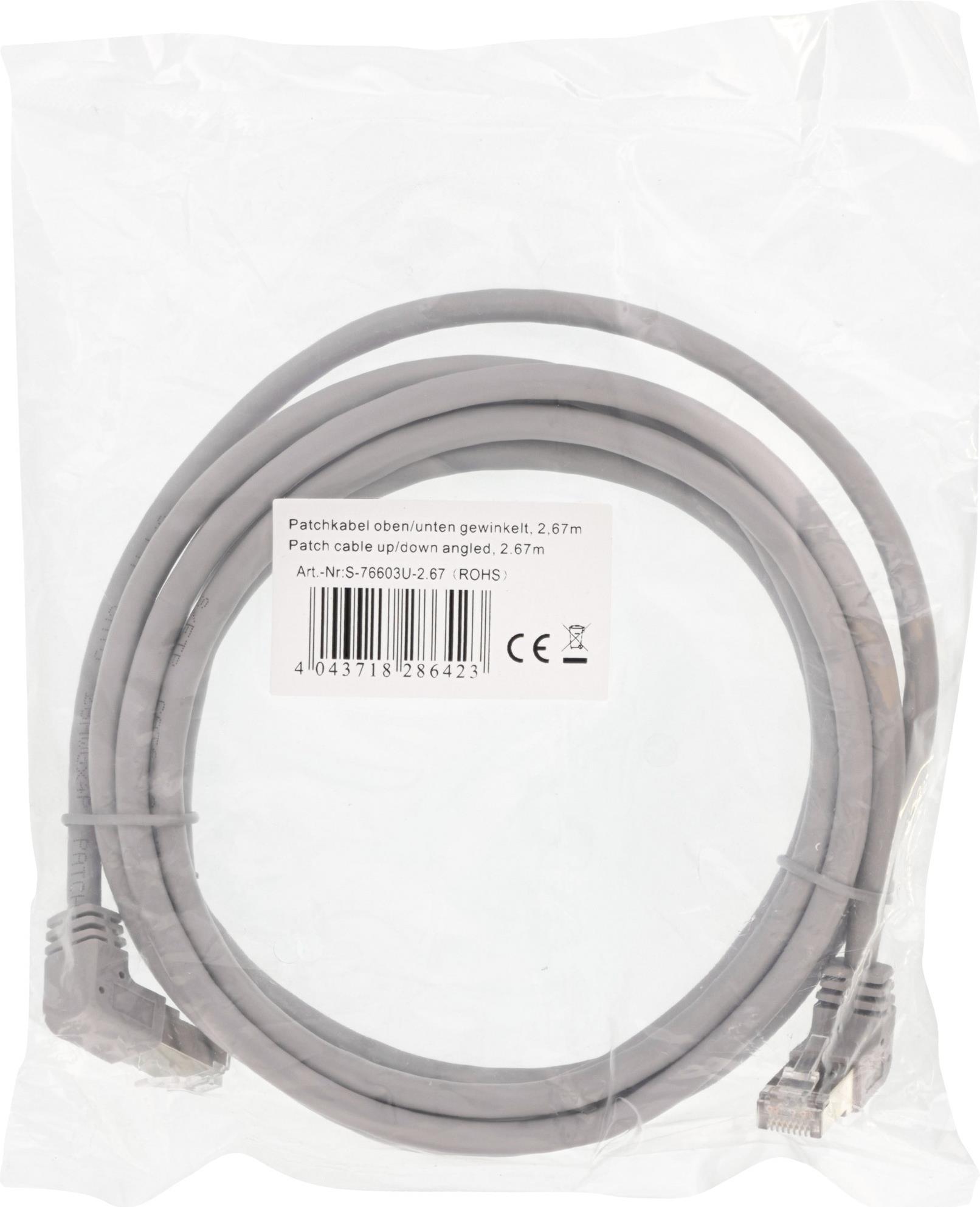 InLine® Patchkabel oben/unten gewinkelt, S/FTP (PiMf), Cat.6, 250MHz, PVC, Kupfer, grau, 2,67m (S-76603U-2.67)