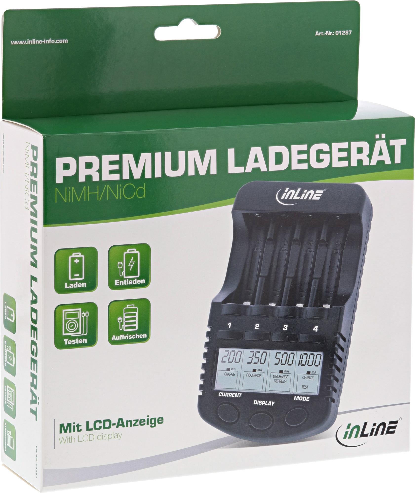 Das InLine Premium Ladegerät ist ausschließlich für NiCd und NiMH, Bauform AA und AAA Akkus geeignet und ist eine schnelle und einfache Lösung, um Akkus zu testen, zu laden, zu entladen oder aufzufrischen.Produkttext[/head]Das InLine Premium Ladegerät ist ausschließlich für NiCd und NiMH, Bauform AA und AAA Akkus geeignet und ist eine schnelle und einfache Lösung, um Akkus zu testen, zu laden, zu entladen oder aufzufrischen. InLine Premium Schnell-LadegerätKann Alles, was ein Akku brauchtDas InLine Premium Schnell-Ladegerät bietet alle Funktionen, die Sie für die Pflege Ihrer Akkus benötigen. Gezieltes Laden Auffrischen, Entladen und Testen erhöht die Lebensdauer und spart bares Geld. Dank der universellen Bauform ist es für alle AA und AAA NiCd oder NiMH Akkus geeignet.[head]Hauptmerkmale