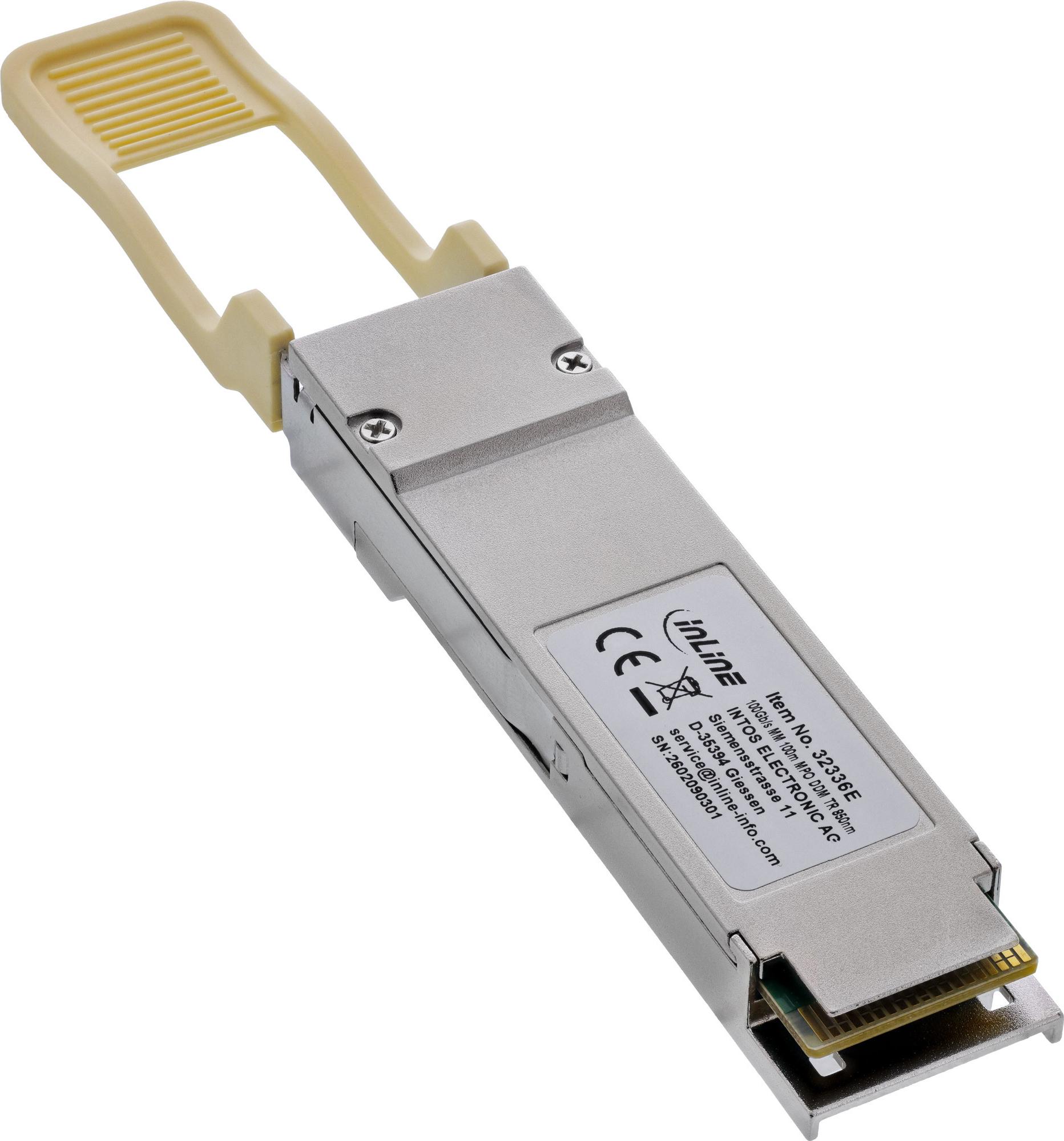 • InLine® QSFP28 SR4 Modul LWL 850nm Multimode MPO, 100m, 100Gb/s (32336E)