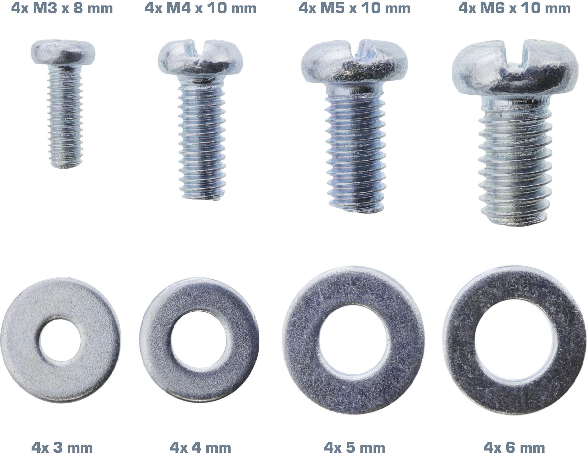 • Unterlegscheiben: 4x 3mm, 4x 4mm, 4x 5mm, 4x6mm