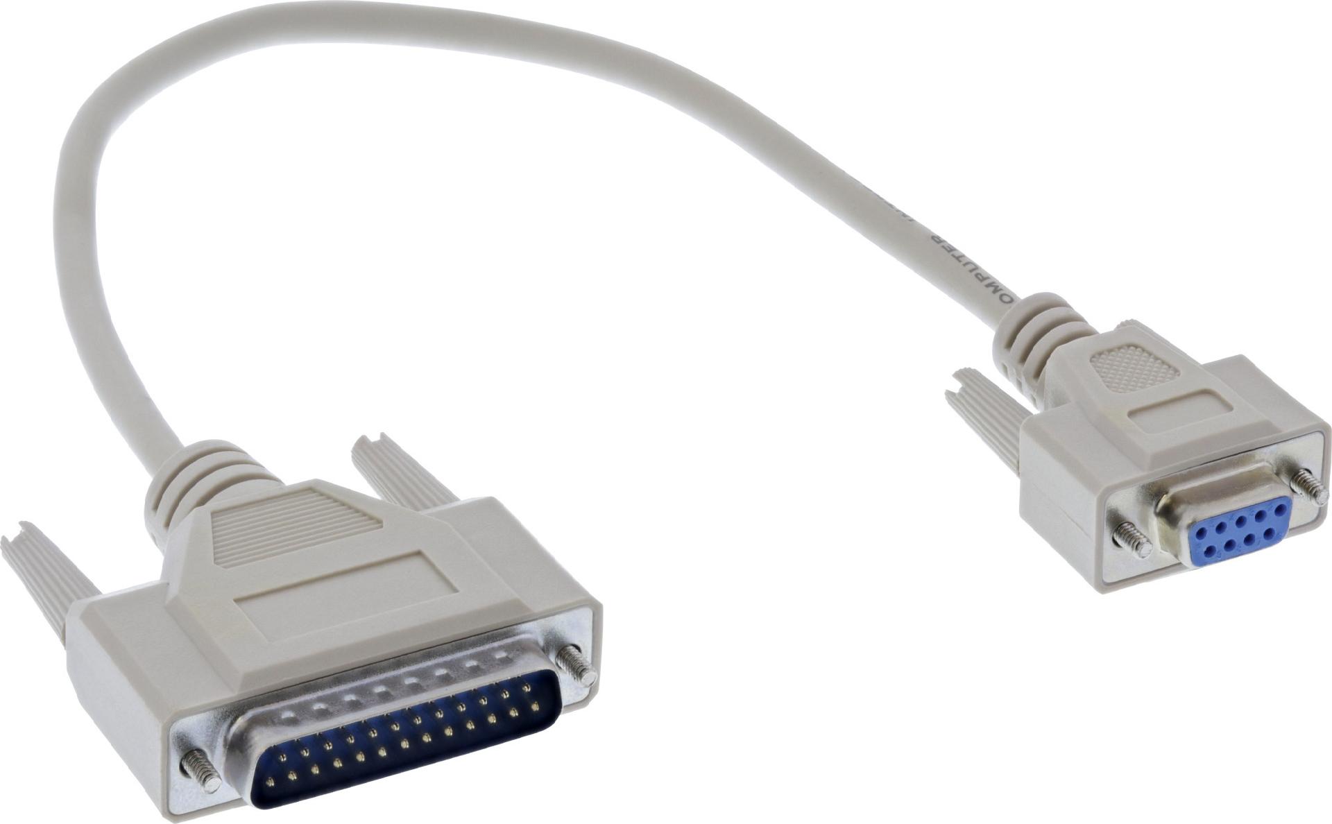InLine® Serielles Kabel 9pol Buchse an 25pol Stecker, 0,33m (S-19255A)