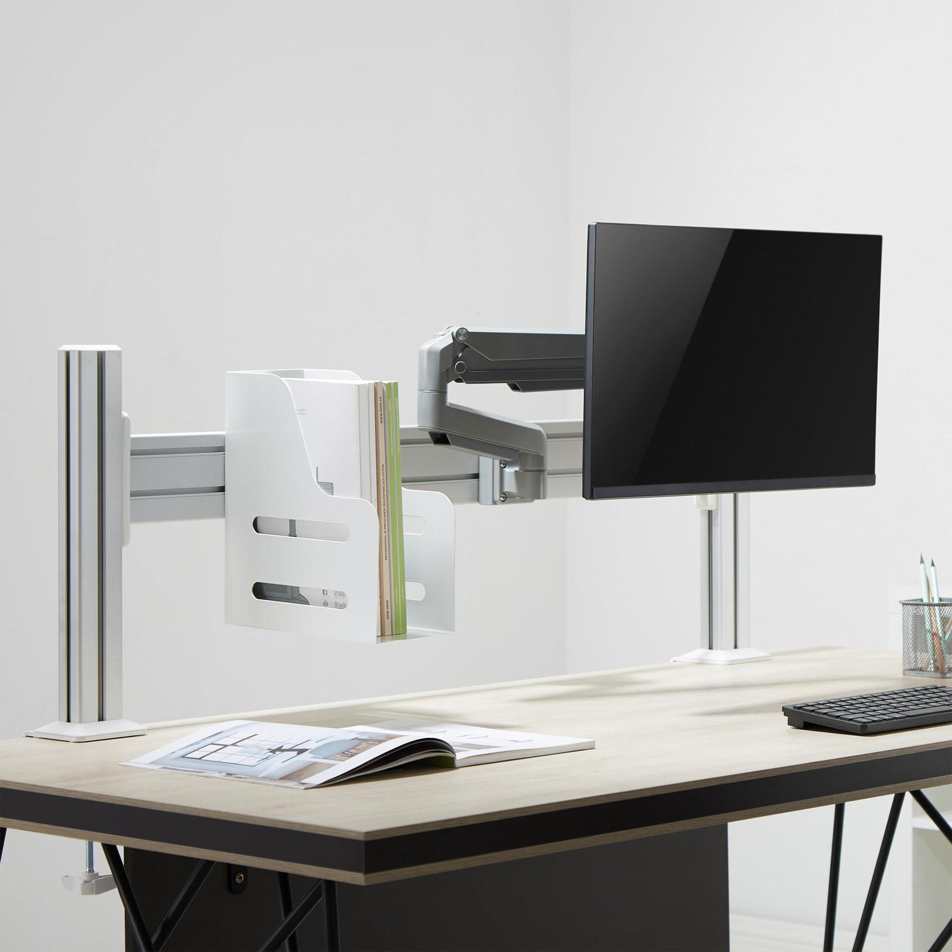 Die Tischmontage bietet eine Dual-User Option, d.h. es können Monitore und Zubehör für zwei gegenüberliegende Schreibtische auf unterschiedlichen Ebenen konfiguriert werden.• InLine Slatwall Dokumentenordner