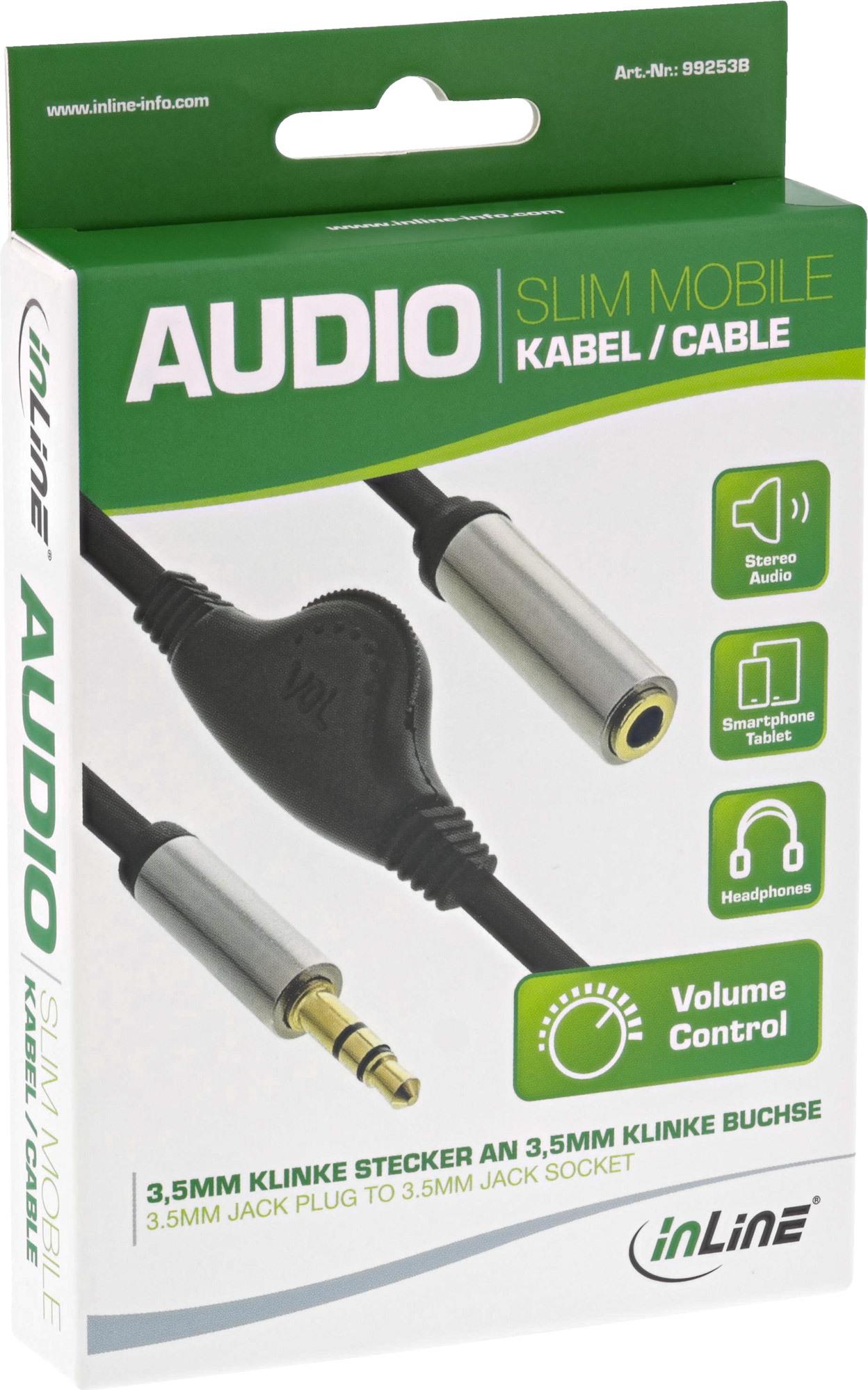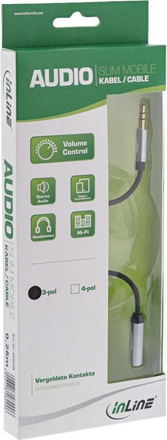 • InLine® Slim Audio Kabel Klinke 3,5mm ST / BU, mit Lautstärkeregler, 0,25m (99253B)