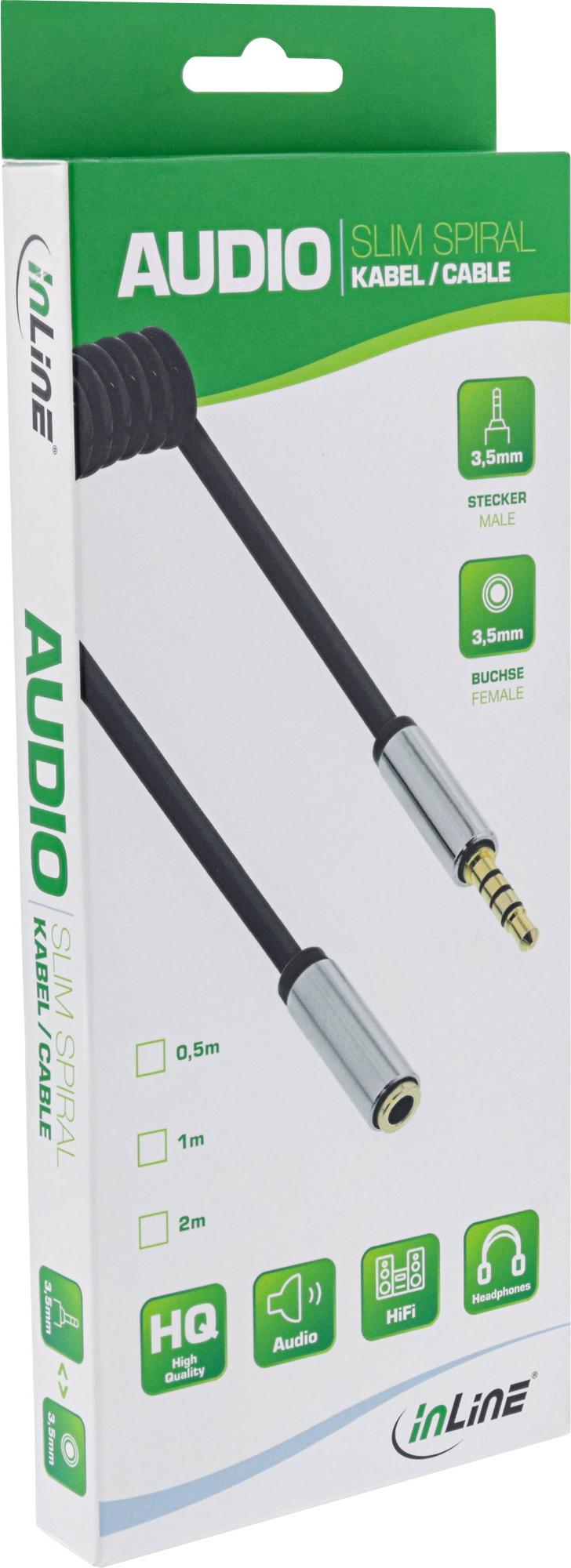 Ob im Auto, in der Bahn, beim Training oder auf einem Ausflug mit Freunden, die InLine® Slim Audio Cables sind Ihr idealer Begleiter. Diese extra dünnen, hochflexiblen Kabel sind mit platzsparenden Slimline-Steckern ausgestattet. Genießen Sie Freiheit ohne Kompromisse bei der Klangqualität. Reine Kupferfäden und vergoldete Stecker sorgen für die beste Leistung Ihrer persönlichen Geräte. Die spezielle Spiralform des Kabels eignet sich für alle Anwendungen, die eine kurzzeitige Kabelverlängerung und ein geringes Volumen bei Nichtgebrauch erfordern.• Extra dünnes und flexibles Slim Audio-Verlängerungskabel in mobiler Qualität (spiralförmig)
