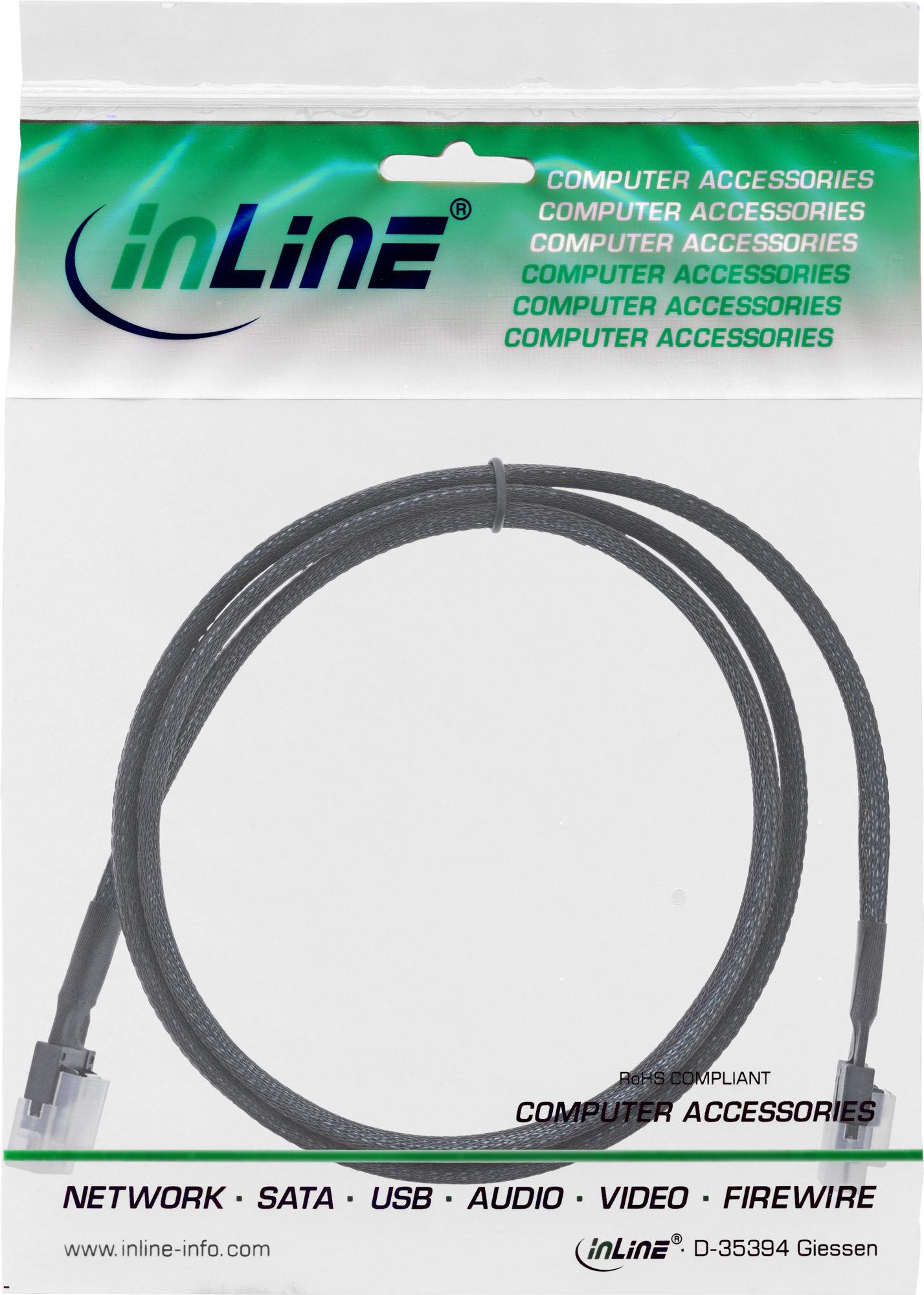 InLine® Slim SAS Kabel zum Verbinden von (internen) SAS Geräten wie z. B. Festplatten an den Controller (HBA-Karten, RAID-Controller, JBOD, DAS, SANS)• Slim SAS 4i Stecker SFF-8654 an Slim SAS 4i Stecker SFF-8654• Stecker mit Verriegelungs-Clip• Konform zu den SAS 4.0 SFF-8654 Spezifikationen• Für Datenübertragung bis 24Gb/s pro Kanal geeignet