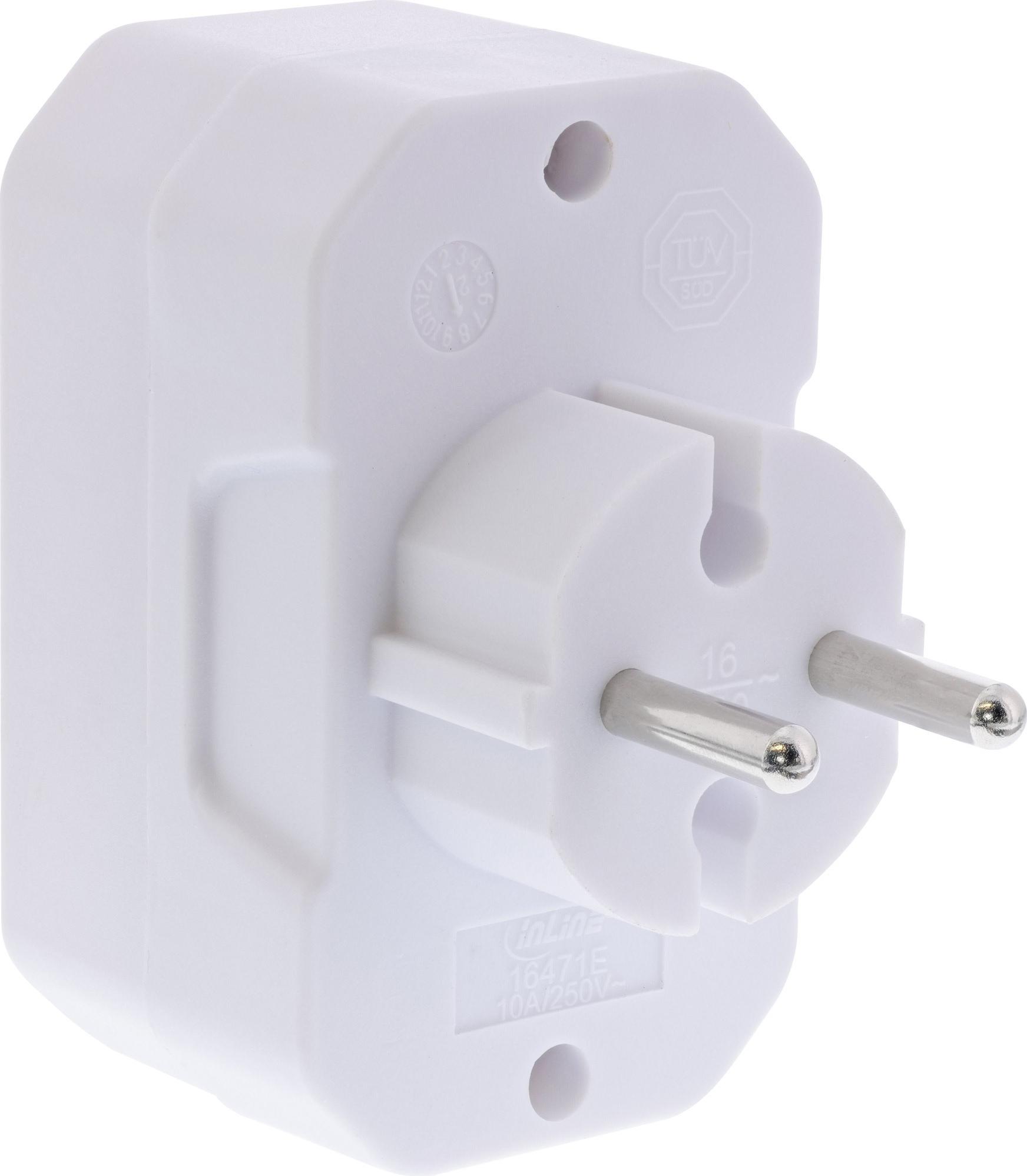 InLine® Steckdosenadapter, Schutzkontakt Stecker an 3x Eurobuchse, mit erhöhtem Berührungsschutz, weiß