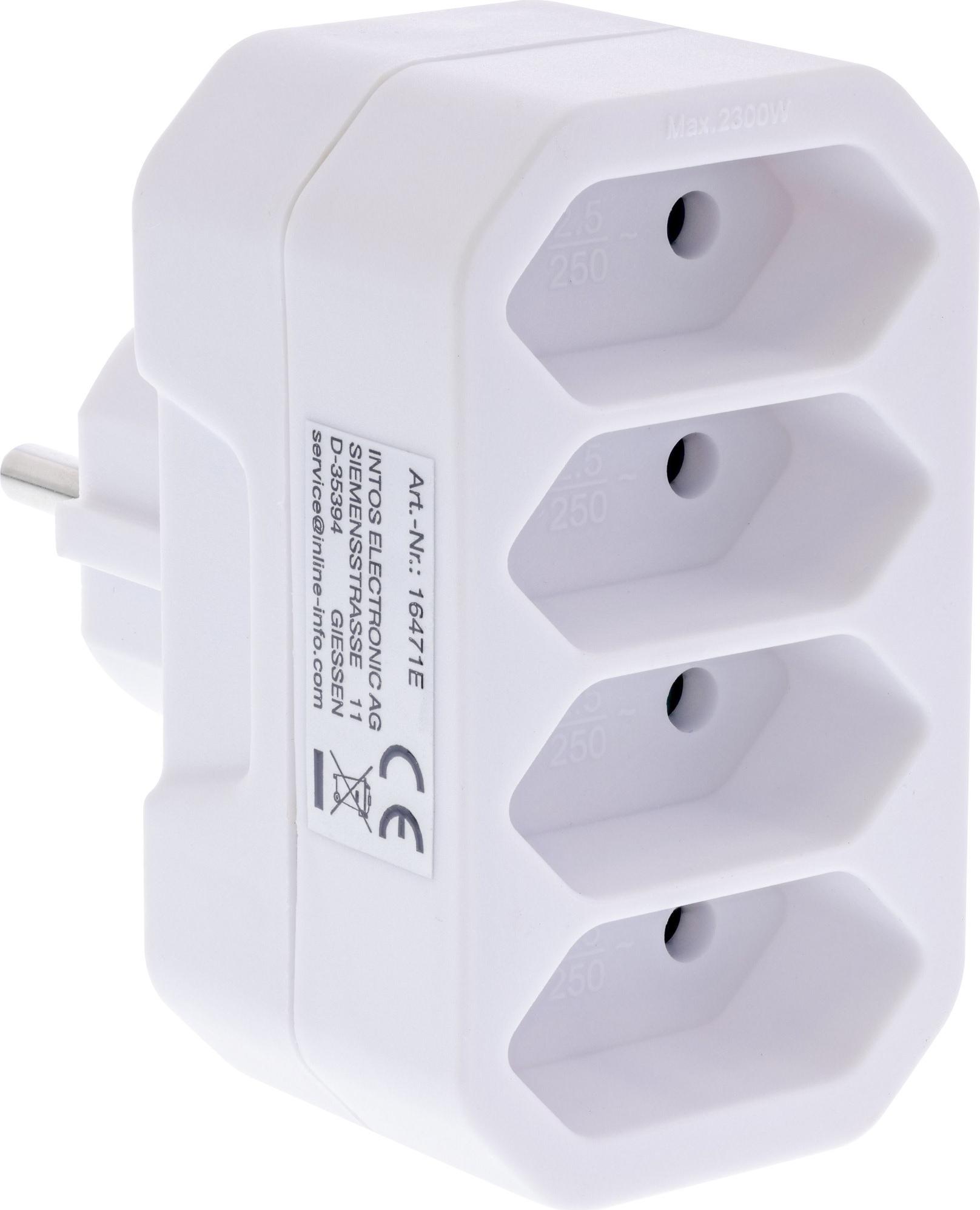 Der InLine® Steckdosenadapter bietet eine praktische und sichere Lösung, um mehrere Geräte, die einen Eurostecker verwenden, gleichzeitig an einer Schutzkontaktsteckdose zu betreiben.• Output: max. 2,5 A / Eurobuchse