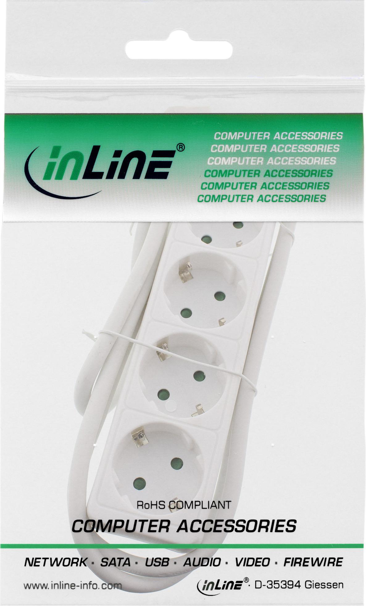 InLine® Steckdosenleiste, 4-fach Schutzkontakt 3m, weiß (16443F)