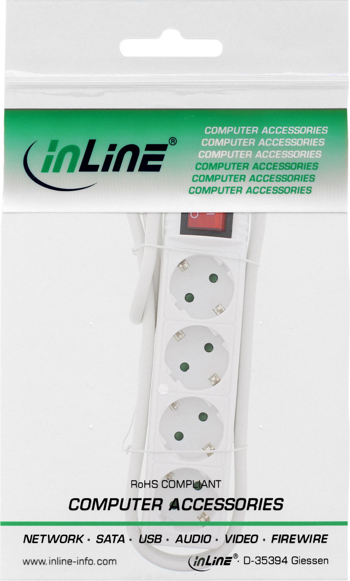 InLine® Steckdosenleiste, 4-fach Schutzkontakt, mit Schalter, 3m, weiß (16443G)