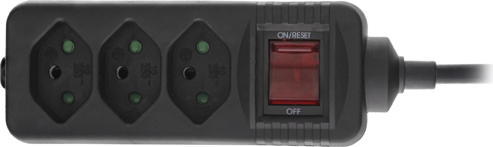 InLine® Steckdosenleiste SCHWEIZ, 3-fach, mit Schalter, 1,5m, schwarz (16431Y)