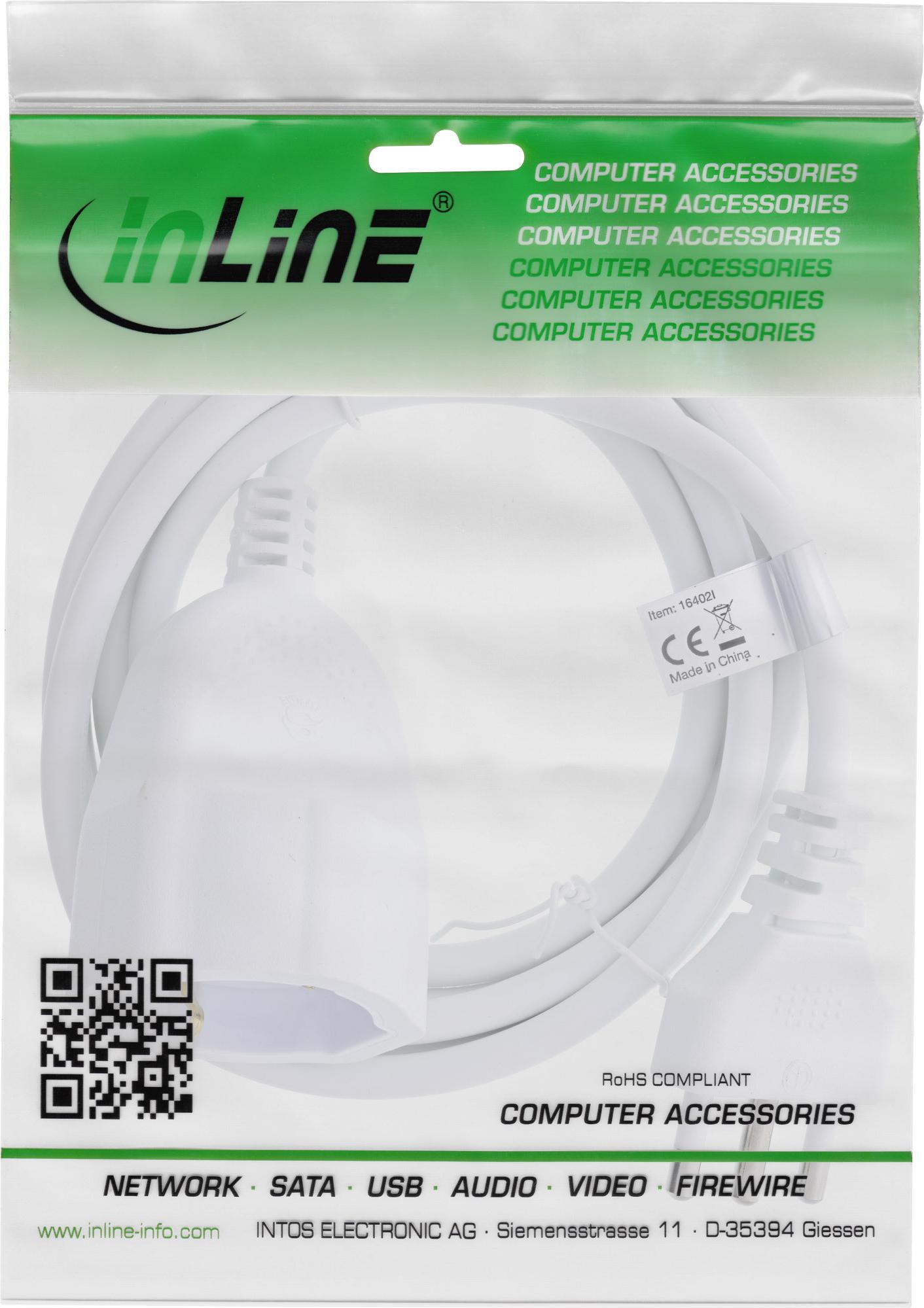 InLine Strom-Verlängerung Schutzkontakt ITALIEN Stecker L / Buchse F - weiß - 3m (16403I)