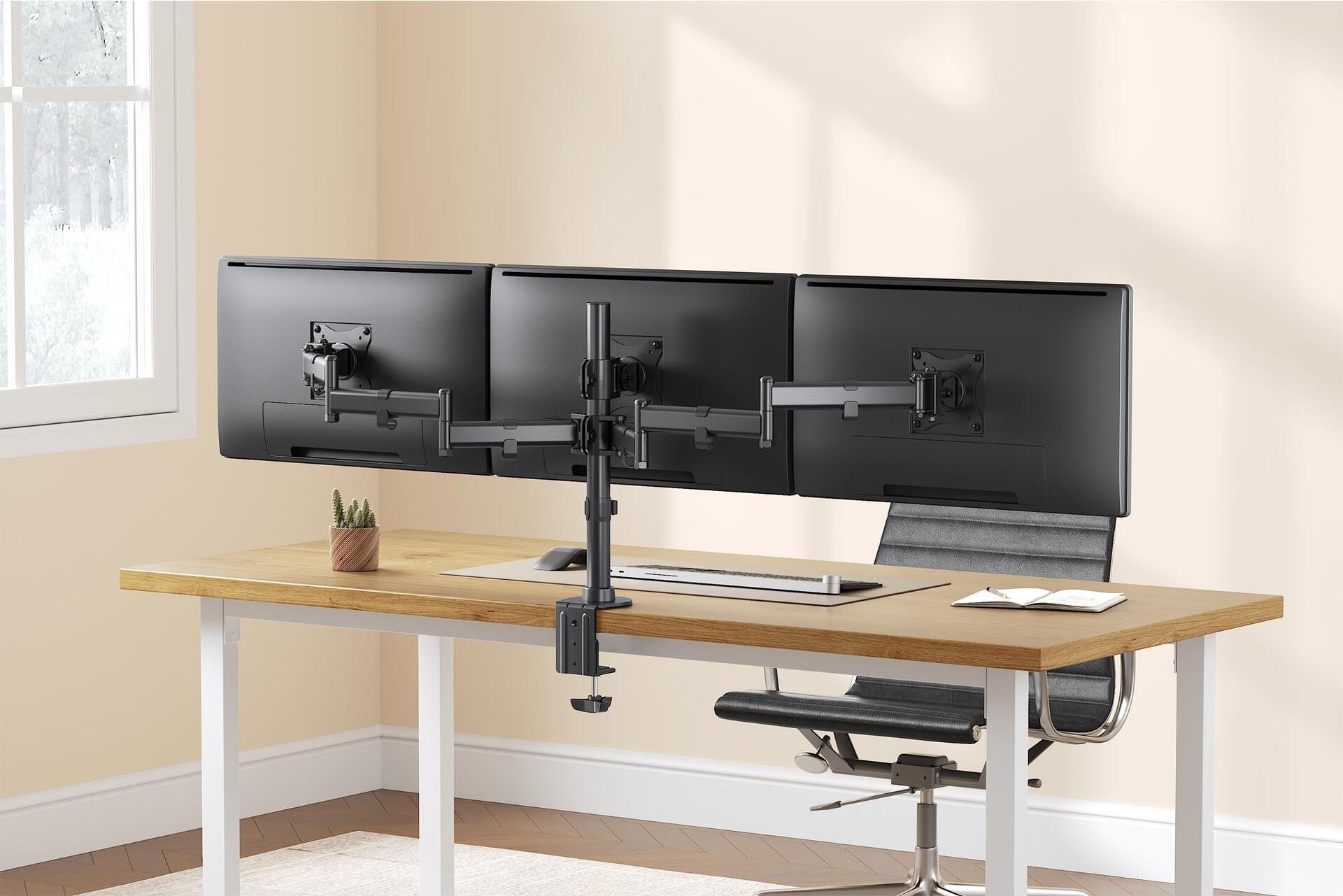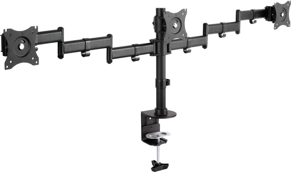 • Flexible Tischhalterung für 3 Monitore• Für 33-68cm Flachbild-Monitore (13\"-27\")• VESA 75x75, 100x100mm kompatibel• Um +/- 45° neig- und schwenkbar• Monitore 360° rotierbar• Mit 2 Gelenkarmen für eine flexible Ausrichtung• Inkl. Zubehör zur Befestigung der Bildschirme• Schraubklemme zur Befestigung an der Tischplatte (bis ca. 8,8cm)• Höhenverstellbar• Bis 8kg pro Arm belastbarProdukttext[/head]Produktinformationen \"InLine® Tischhalterung für 3x TFT/LCD/LED bis 68cm (27\"), max. 3x 8kg\"Flexible Tischhalterung für 3 MonitoreFür 33-68cm Flachbild-Monitore (13\"-27\")VESA 75x75, 100x100mm kompatibelUm +/- 45° neig- und schwenkbarMonitore 360° rotierbarMit 2 Gelenkarmen für eine flexible AusrichtungInkl. Zubehör zur Befestigung der BildschirmeSchraubklemme zur Befestigung an der Tischplatte (bis ca. 8,8cm)HöhenverstellbarBis 8kg pro Arm belastbar[head]Hauptmerkmale