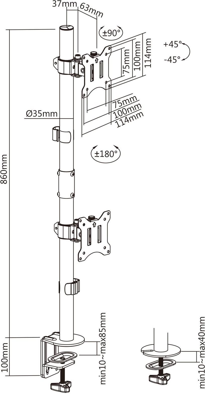 • Höhenverstellbar bis ca. 86cm (für 2 Monitore)