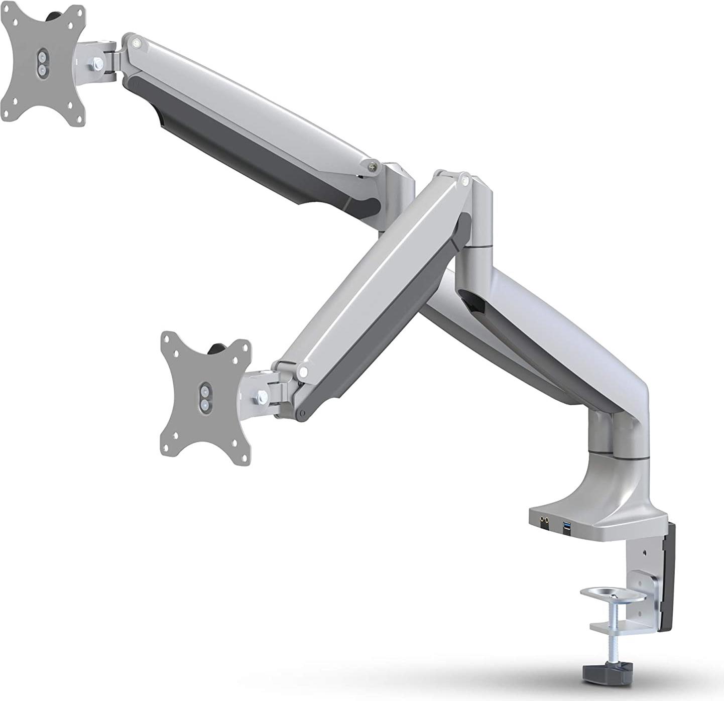 • Gasfeder-Aluminium-Monitorarm für zwei Monitore