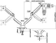 • Gasfeder-Aluminium-Monitorarm für zwei Monitore• Schwenkarm: Bietet bequemere Bedienung• Gasfeder: Gleicht das Gewicht Ihres Monitors perfekt aus• Abnehmbare VESA-Platte: Ermöglicht einfache Installation• Extra Werkzeughalter• Eingebautes Kabelmanagement: Für einen organisierten und übersichtlichen Arbeitsbereich• Inkl. USB/Audio-Verlängerung (1x USB 3.0 Typ A / 2x 3,5mm Klinke)• Bildschirmgröße: 17\"-32\"• Gewicht (pro Bildschirm): 1 kg bis zu 9 kg• VESA-kompatibel: 75x75 mm, 100x100 mm• Neigungsbereich: +90°~-90°• Schwenkbereich: +90°~-90°• Bildschirm-Rotation: +90°~-90°• Vorgeschlagene Schreibtischstärke: Klemme 10~85mm, Durchführung 10~80mmHauptmerkmale