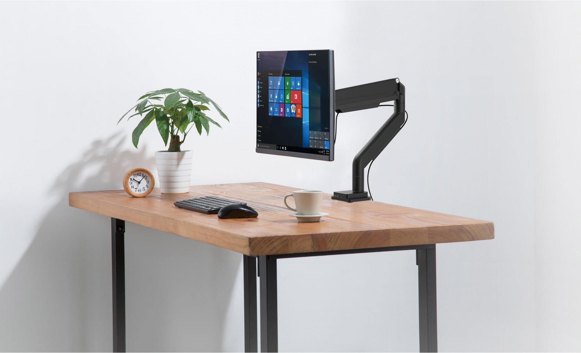 • Gasfeder-Aluminium-Monitorarm für einen Monitor• Schwenkarm: Bietet bequemere Bedienung• Gasfeder: Gleicht das Gewicht Ihres Monitors perfekt aus• Abnehmbare VESA-Platte: Ermöglicht einfache Installation• Extra Werkzeughalter• Eingebautes Kabelmanagement: Für einen organisierten und übersichtlichen Arbeitsbereich• Inkl. USB/Audio-Verlängerung (1x USB 3.0 Typ A / 2x 3,5mm Klinke)• Bildschirmgröße: 17\"-32\"• Gewicht (pro Bildschirm): 1 kg bis zu 9 kg• VESA-kompatibel: 75x75 mm, 100x100 mm• Neigungsbereich: +90°~-90°• Schwenkbereich: +90°~-90°• Bildschirm-Rotation: +90°~-90°• Vorgeschlagene Schreibtischstärke: Klemme 10~85mm, Durchführung 10~80mm