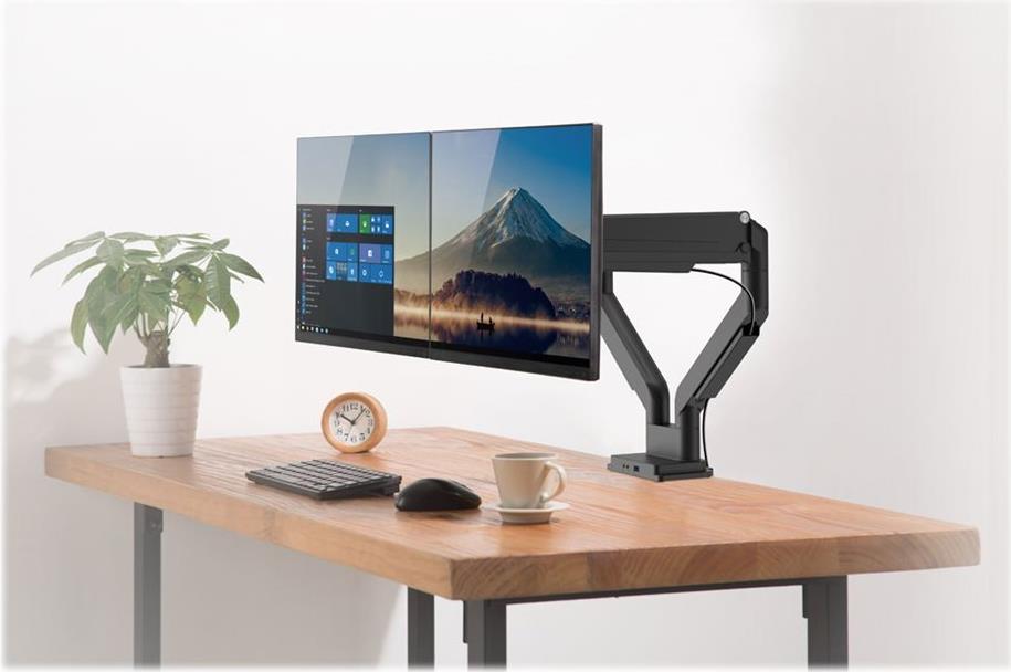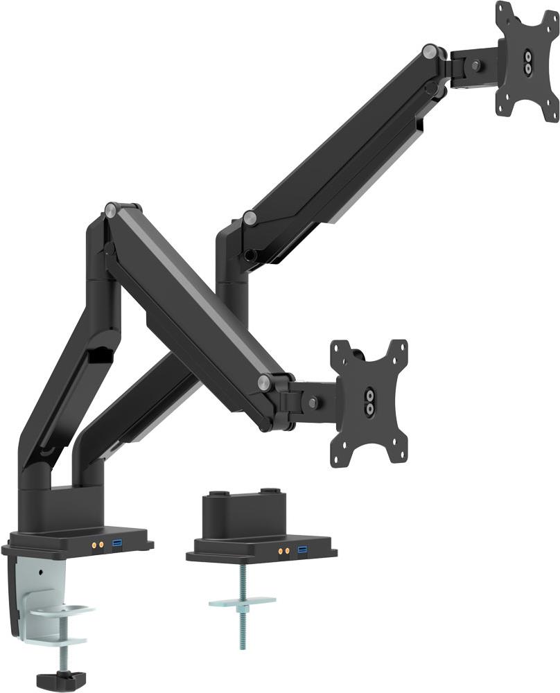 • Gasfeder-Aluminium-Monitorarm für zwei Monitore