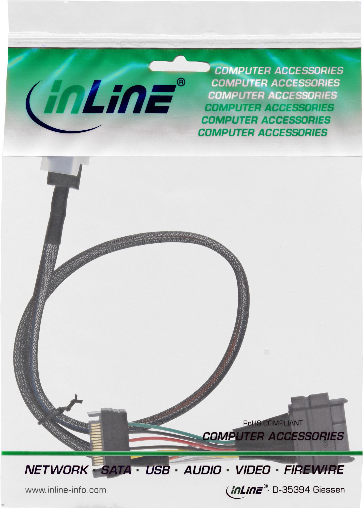 InLine® U.2 Anschlusskabel, SSD mit U.2 (SFF-8639) an SFF-8643 + Strom, 0,75m (29620B)
