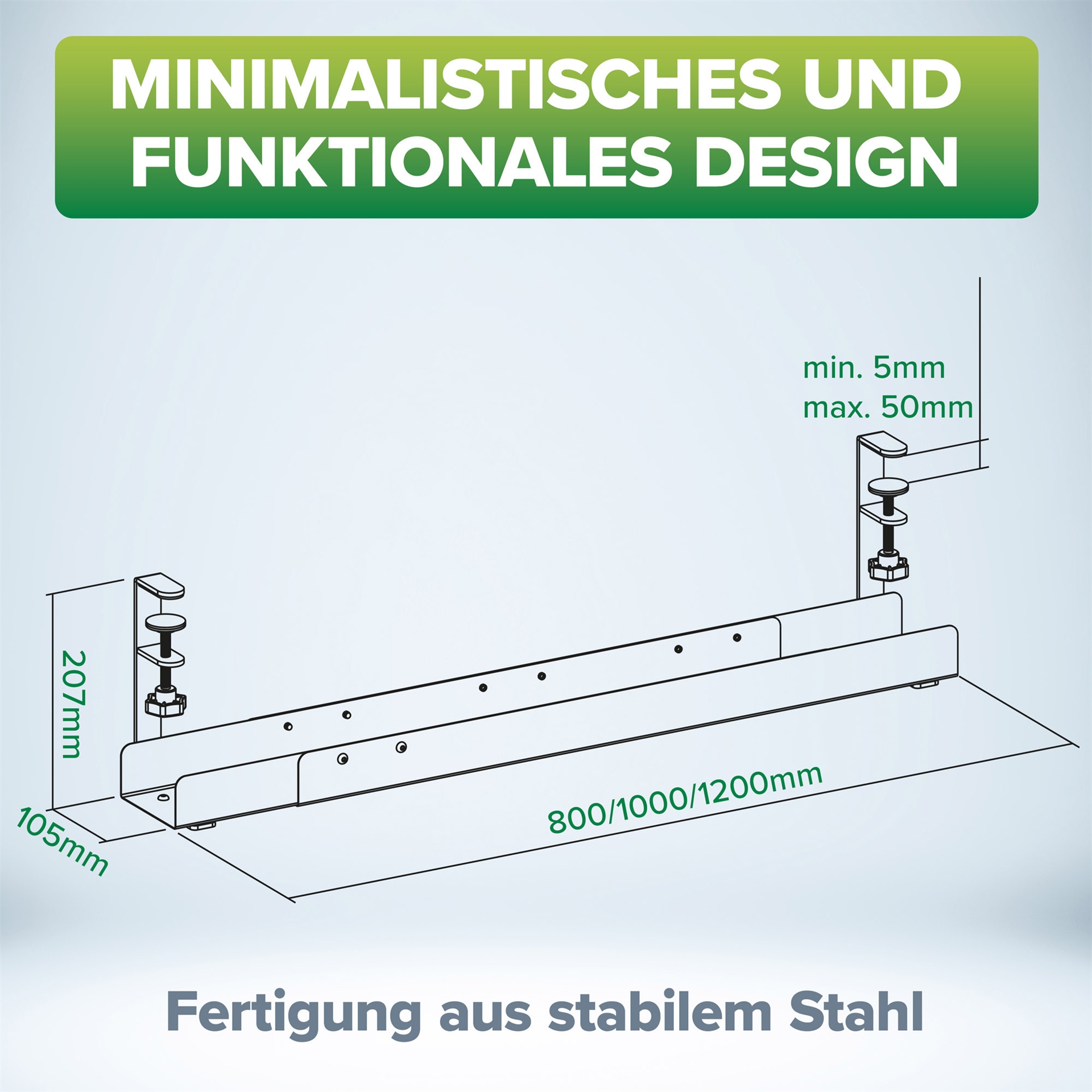 • Abmessungen: 800 / 1000 / 1200 × 105 × 207 mm