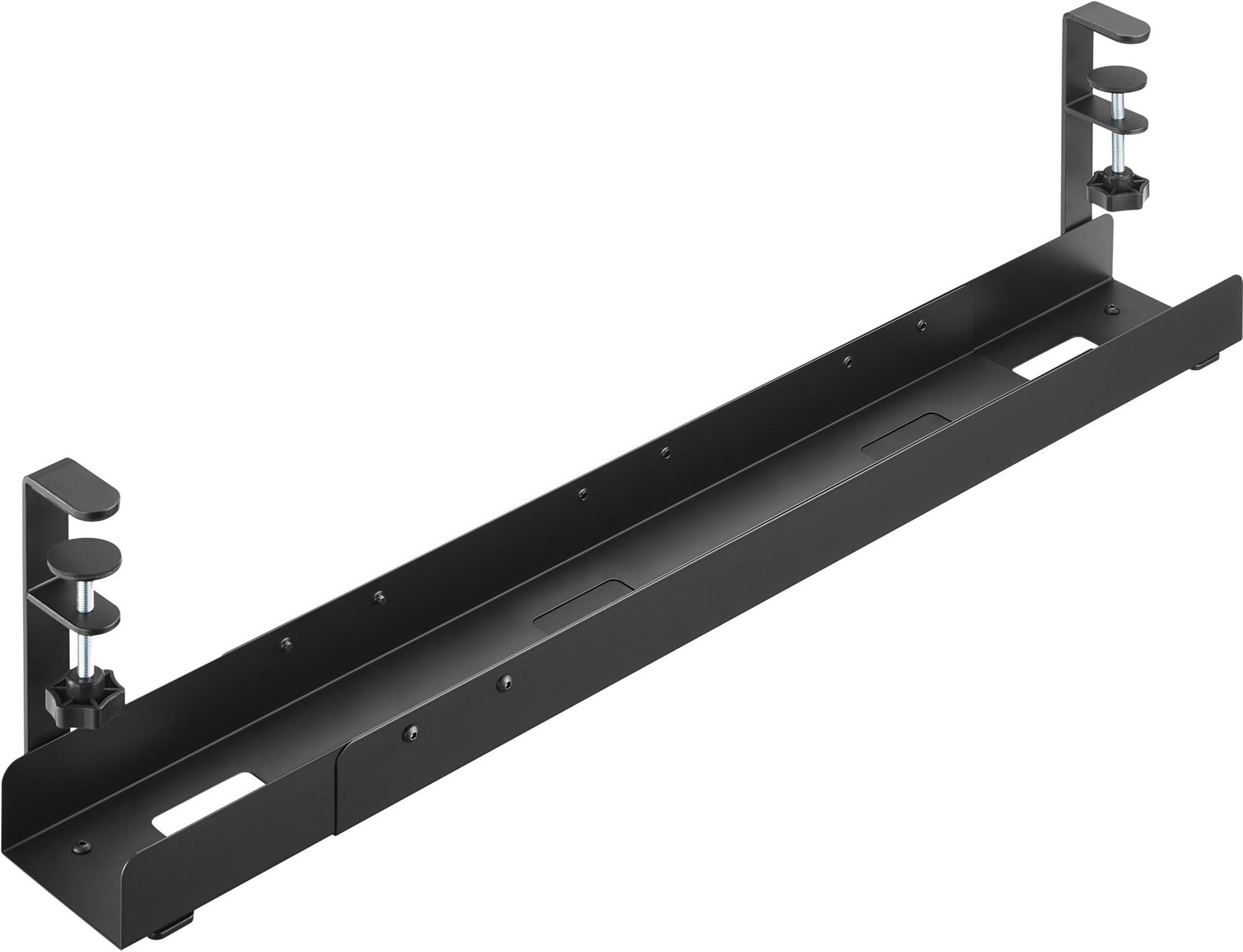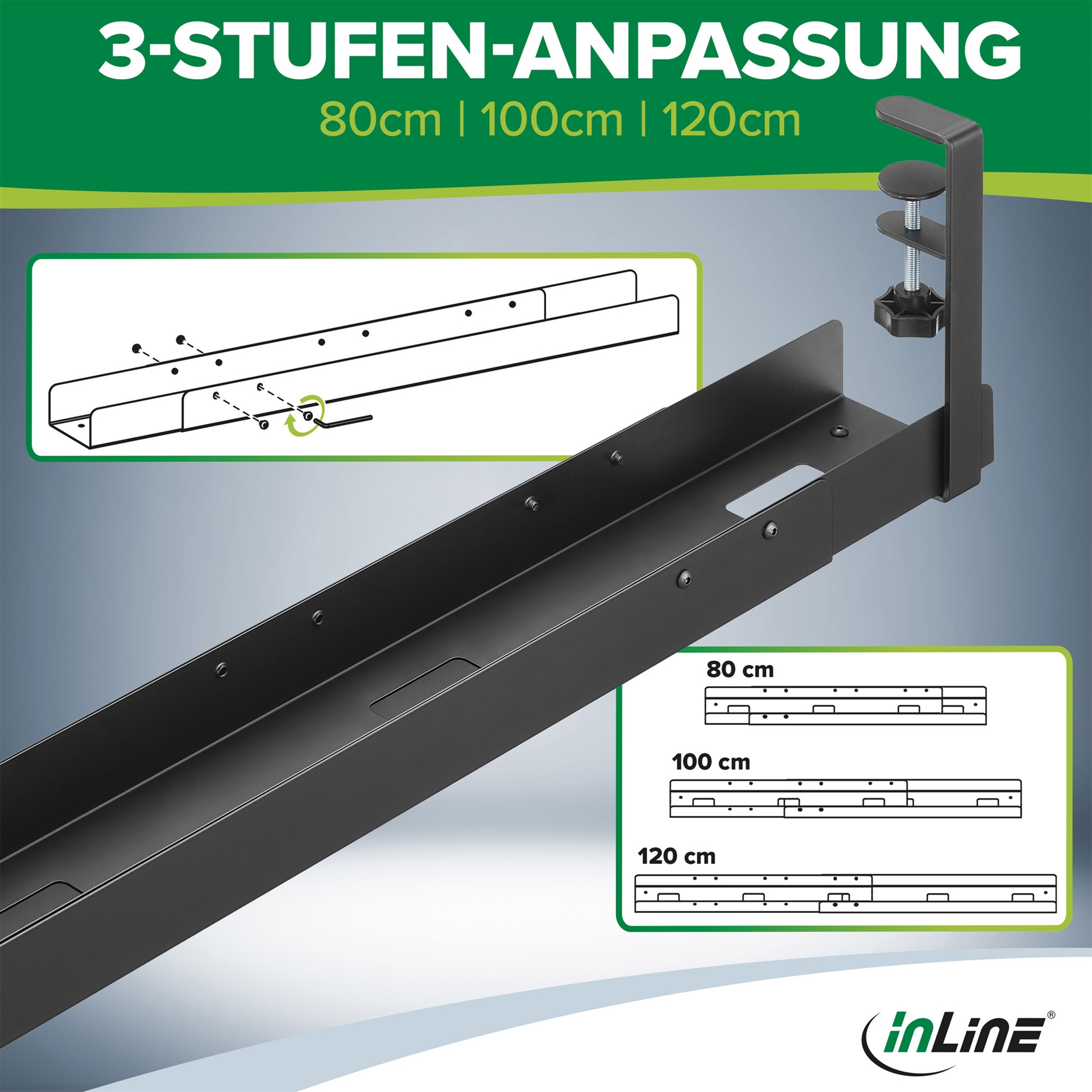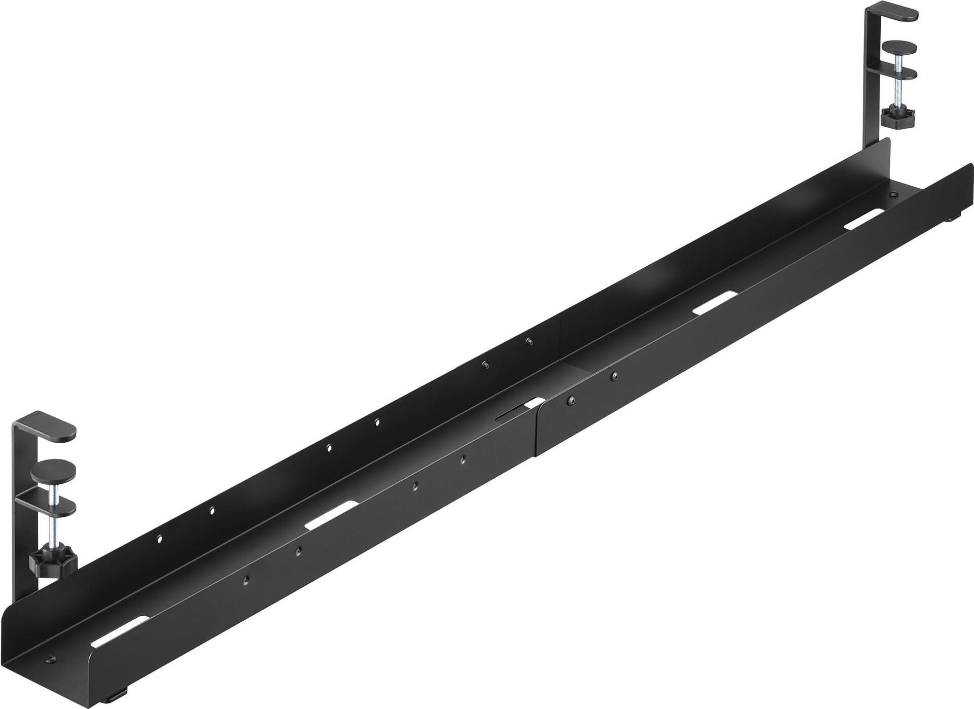 Die InLine® Universal Kabelführungsschiene ist eine professionelle Lösung zur strukturierten Kabelführung unter Schreibtischen. Besonders in modernen Arbeitsumgebungen mit höhenverstellbaren Tischen oder komplexer Technik ist eine stabile und gleichzeitig flexible Kabelführung essenziell. Diese Schiene bietet eine 3-stufige Längenverstellung (80 cm, 100 cm, 120 cm), die eine einfache Anpassung an unterschiedliche Tischgrößen ermöglicht.Die Montage erfolgt werkzeuglos über stabile Schraubzwingen, die an der Tischplatte befestigt werden – ohne diese zu beschädigen. Dies erleichtert nicht nur die Erstinstallation, sondern erlaubt auch ein einfaches Versetzen oder Umrüsten. Durch das offene Design wird eine gute Luftzirkulation gewährleistet, was besonders bei der Verwendung von Netzteilen oder Mehrfachsteckdosen von Vorteil ist.Die robuste Stahlkonstruktion sorgt für eine hohe Stabilität und Langlebigkeit, selbst im täglichen Einsatz in Büros, Bildungseinrichtungen oder bei Systemhäusern. Die Kabelführungsschiene schützt Kabel und Steckverbindungen zuverlässig vor mechanischer Belastung und trägt maßgeblich zu einem ordentlichen und sicheren Arbeitsplatz bei.• Farbe: Schwarz