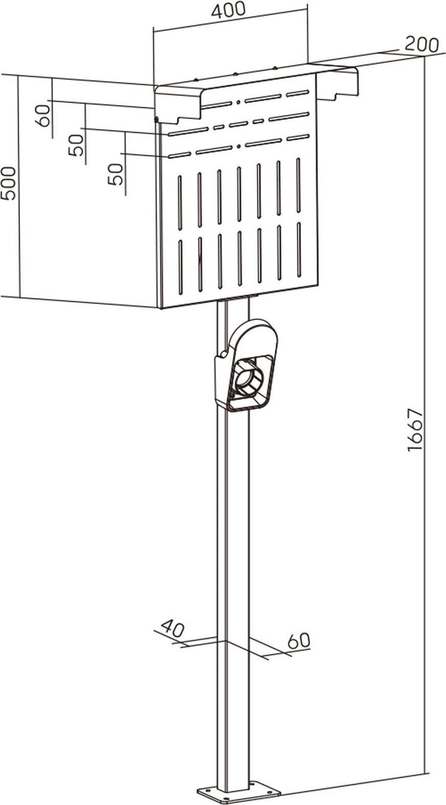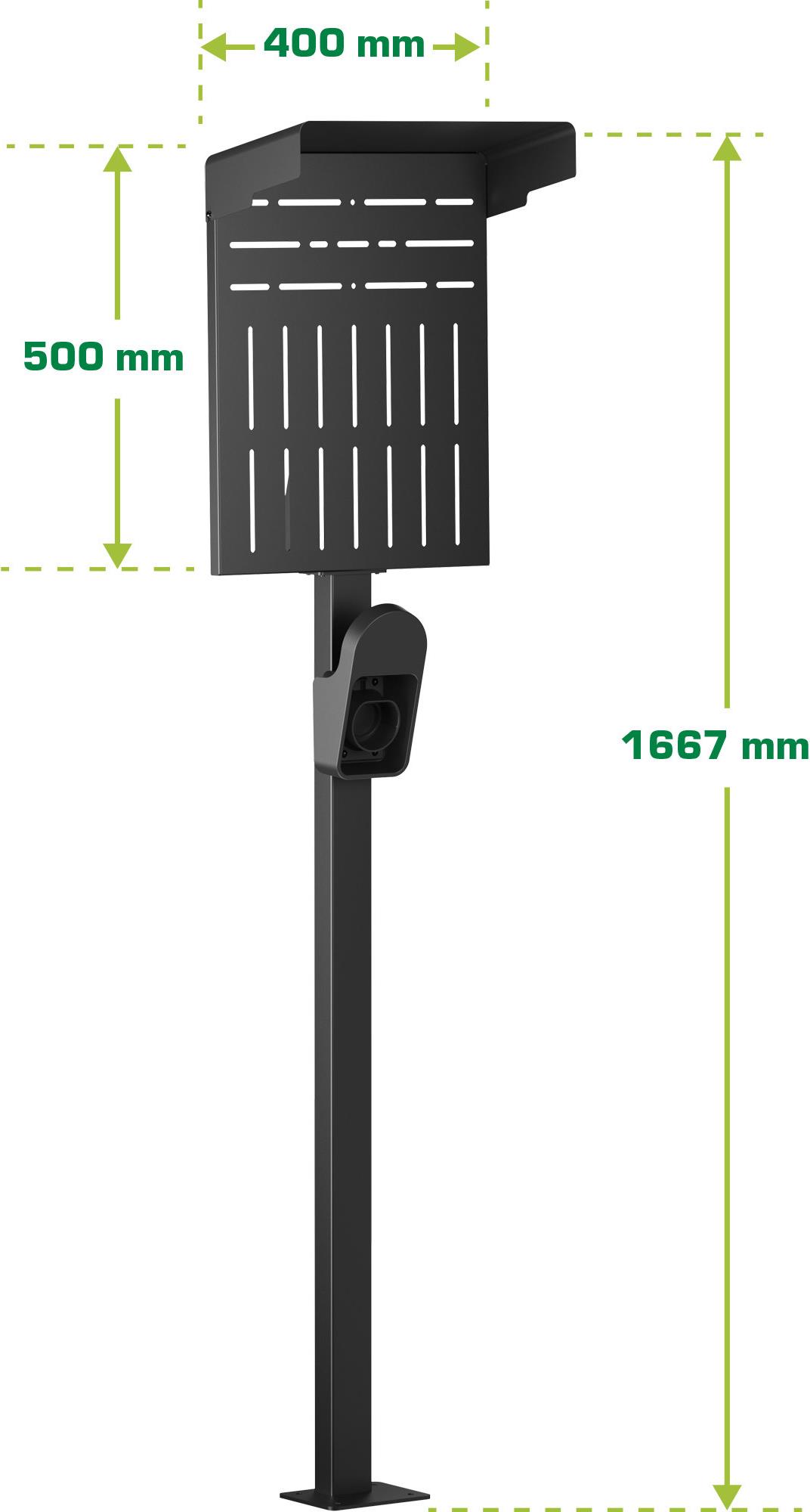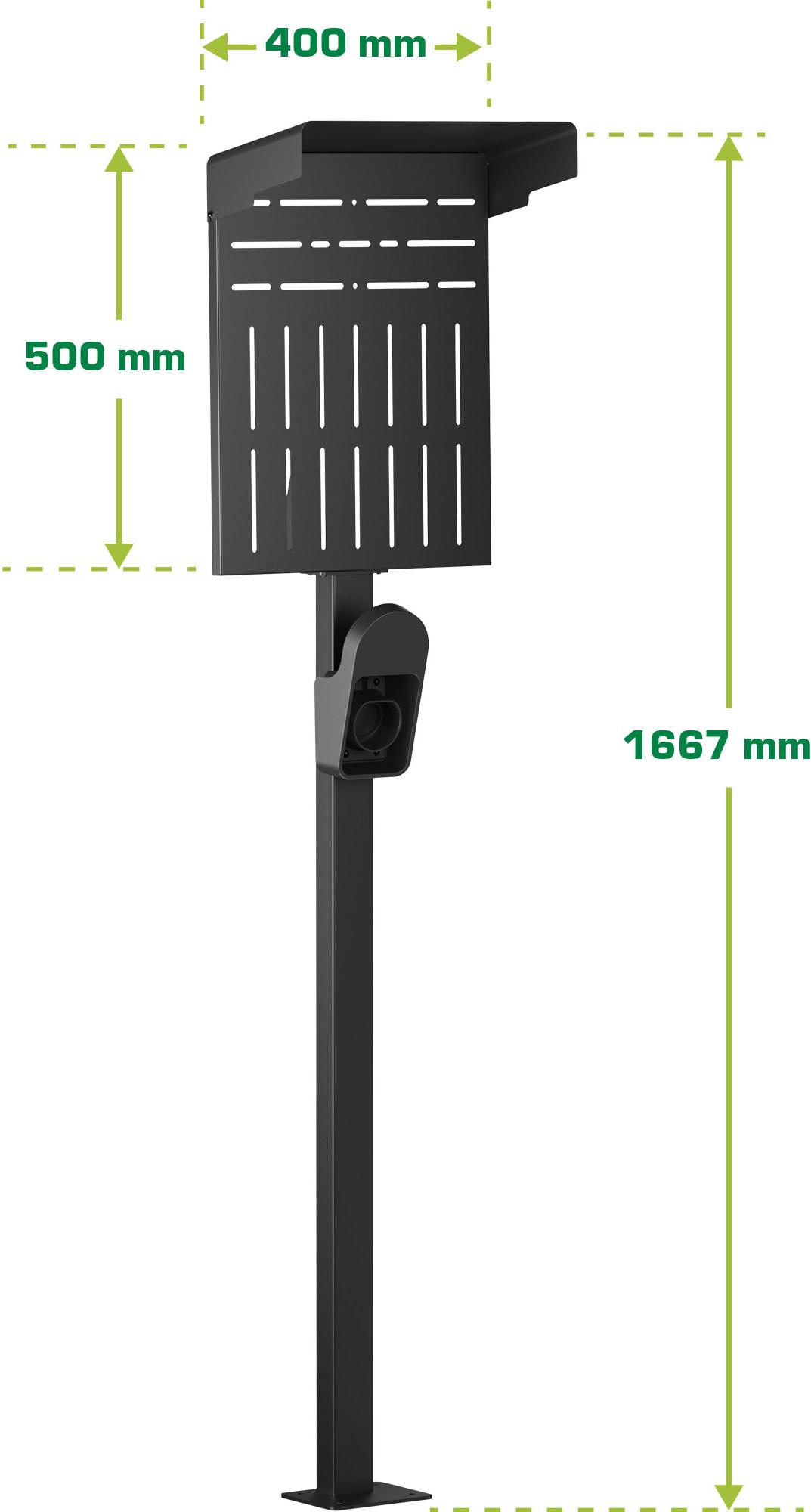 • Die verfügbare Fläche zur Montage einer Wallbox beträgt 50 x 40 cm (Breite x Höhe). Der Regenschutz hat eine Tiefe von 20cm