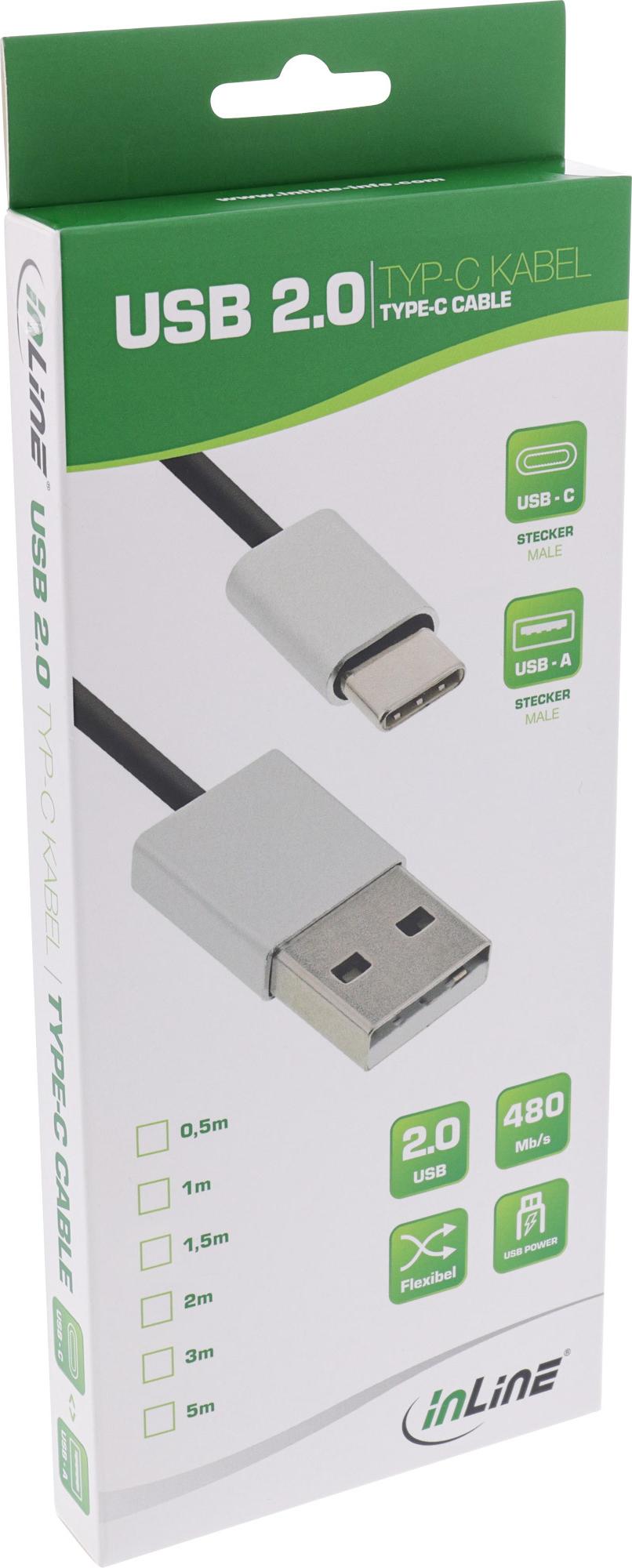 Ultraflexibles InLine® High Speed USB 2.0 ( Universal Serial Bus ) Kabel mit hochwertigen, aluminiumbeschichteten Steckern. Egal ob gerade oder schief, der reversible Typ-C Stecker kann in jede Richtung gesteckt werden. Klein, kompakt und preiswert: Mit einer Breite von nur 8,4x2,6mm findet dieser Stecker seinen idealen Einsatz an Smartphones, Tablets, externen USB-Festplatten, externen USB-Grafikkarten und anderen Peripheriegeräten. Das spezielle Design dieses Steckers erlaubt es, ihn mittig und bündig auf einem Gerät zu montieren. Abwärtskompatibilität über Adapter. Laut Hersteller beträgt die durchschnittliche Lebensdauer des Typ-C-Steckers 10.000 Steckvorgänge und ist damit doppelt so lang wie die der Typ-A-Stecker.• Konform mit den USB 2.0-Spezifikationen