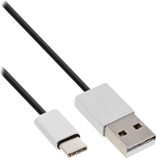 InLine® USB 2.0 Kabel, Typ C Stecker an A Stecker, schwarz/Alu, flexibel, 1,5m (35834)