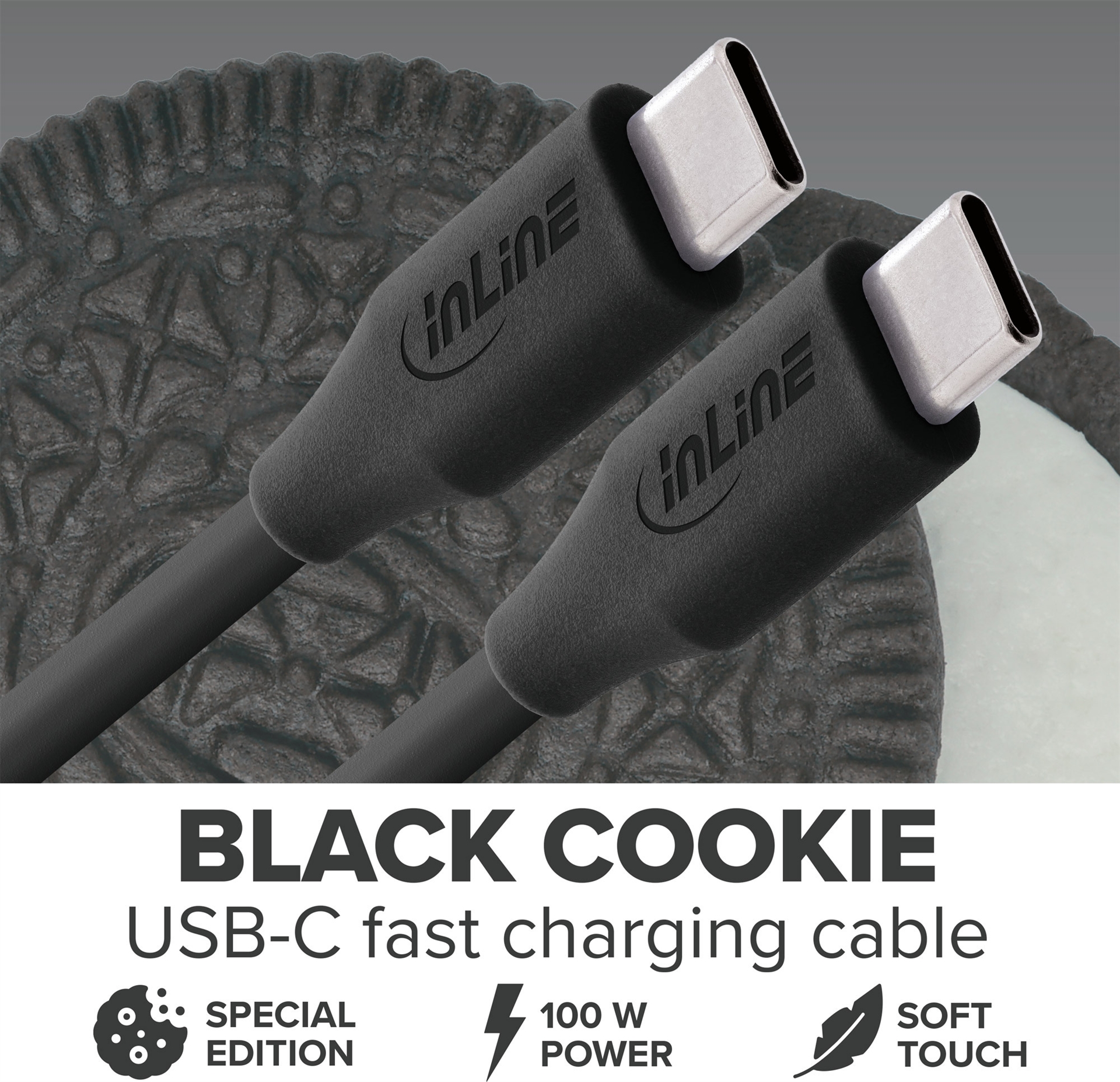 InLine USB 2.0 Kabel - USB-C Schnellladekabel 100W - Black Cookie - 1m (35891)