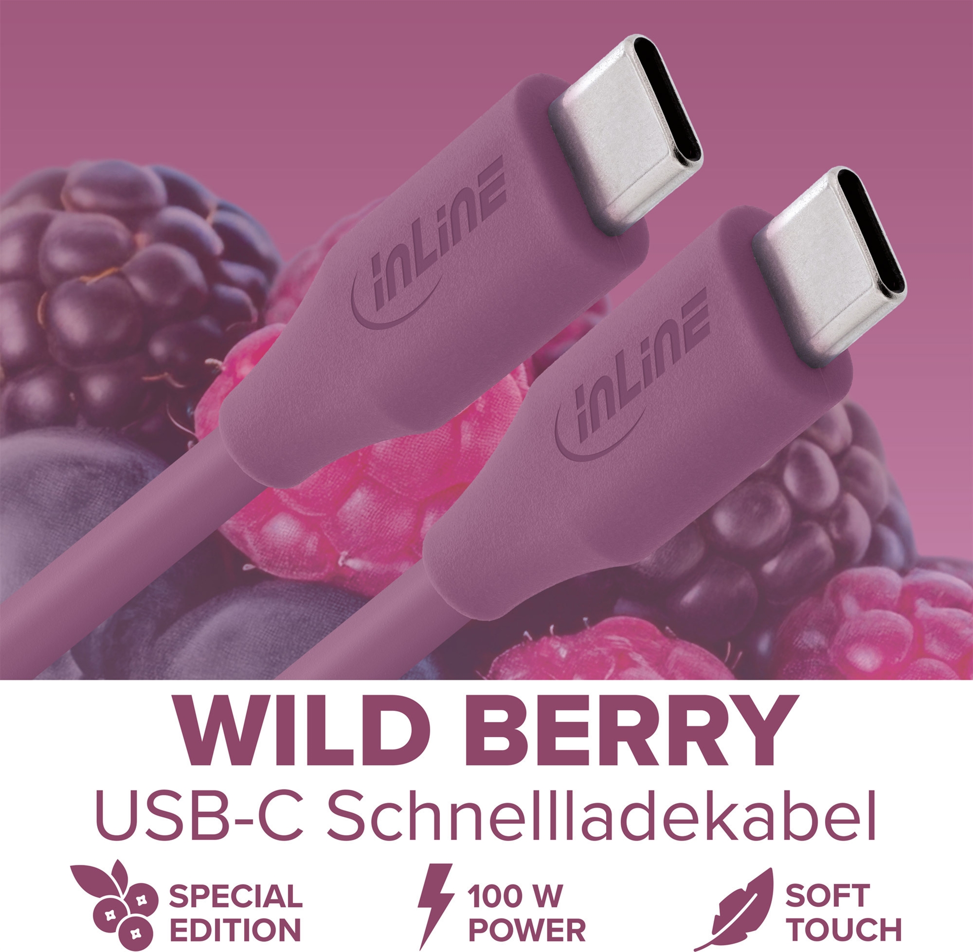 InLine USB 2.0 Kabel - USB-C Schnellladekabel 100W - Wild Berry - 1m (35891P)