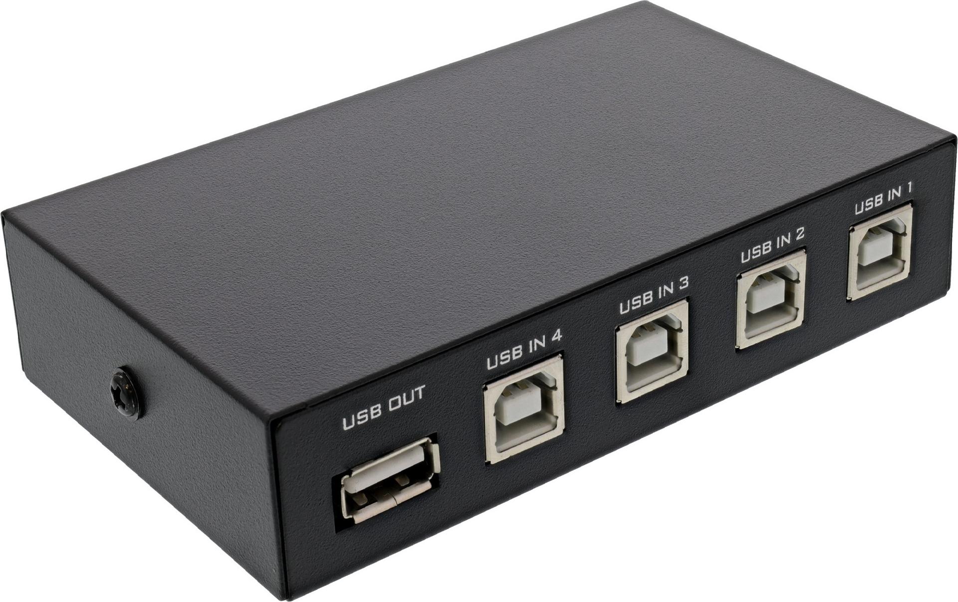 Dieser manuelle Umschalter ermöglicht das einfache Teilen von einem USB 2.0-Gerät mit USB-A Anschluss an 4 Computer. Die Umschaltung erfolgt rein mechanisch, es wird keine zusätzliche Spannungsversorgung benötigt.• Manueller USB Umschalter, 1 USB-Gerät an 4 Computer