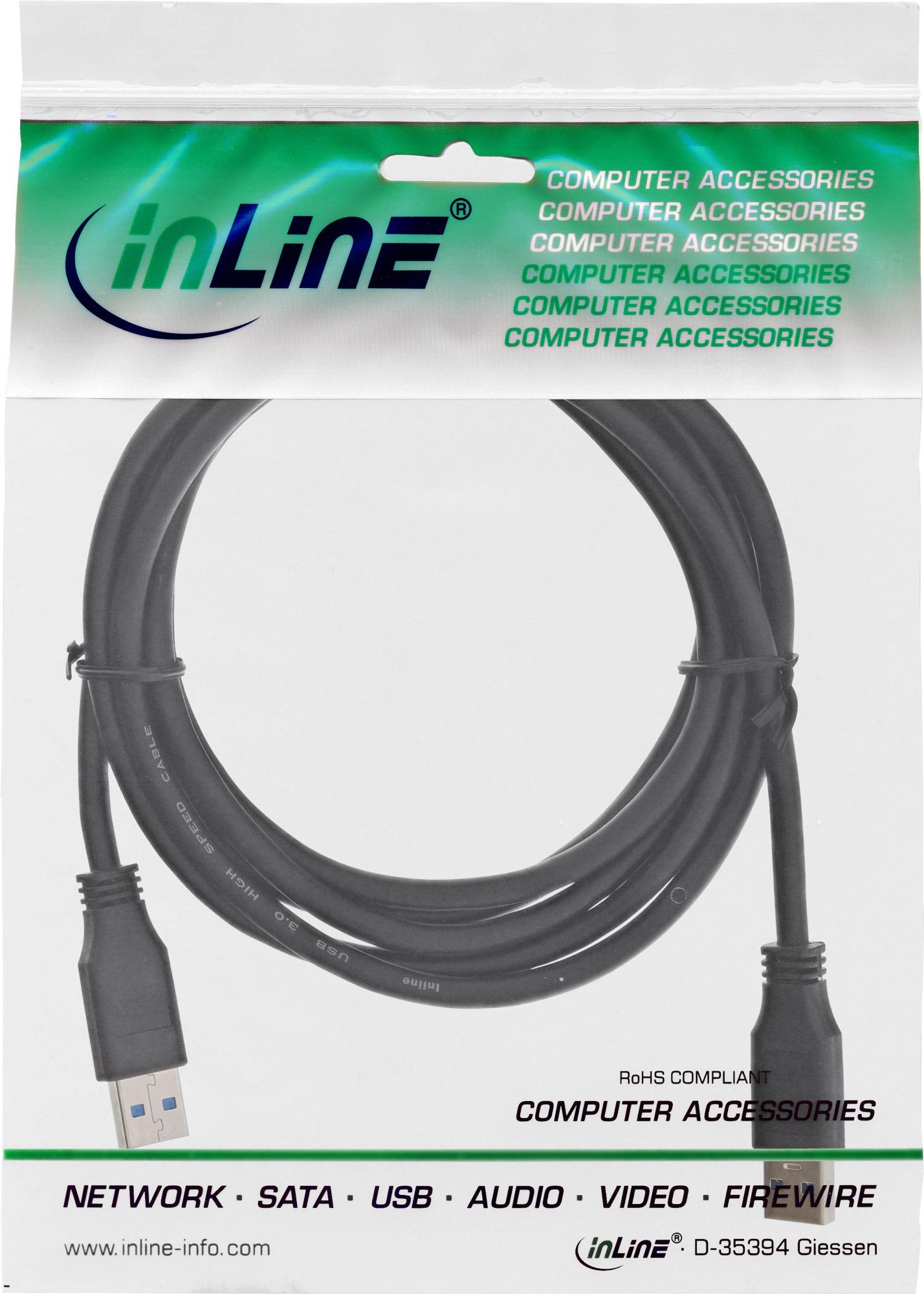 InLine® USB 3.0 Kabel, A an A, schwarz, 1,5m (35215)