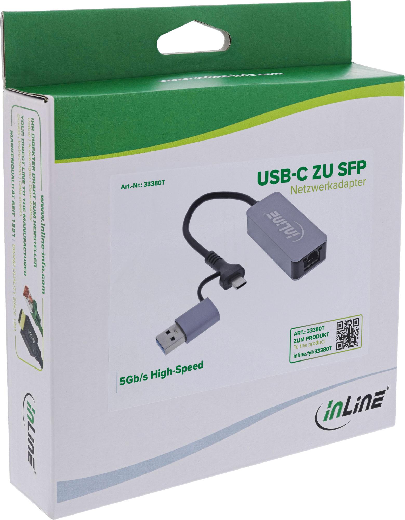 InLine USB 3.2 zu 5 Gb/s Netzwerk-Adapter USB-C+USB-A Adapter RJ45 - Adapter - Digital/Daten (33380T)