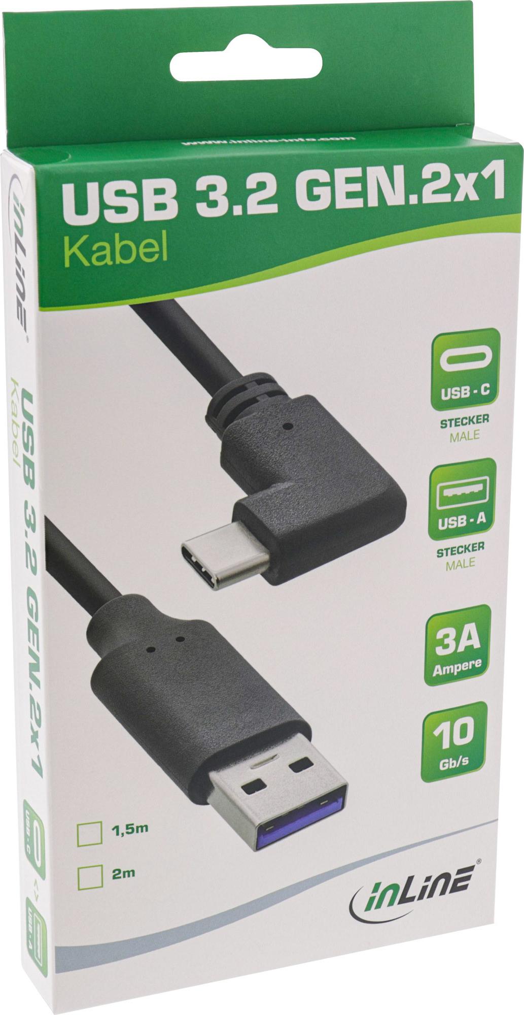 InLine USB 3.2 Kabel - USB Typ-C Stecker gewinkelt an A Stecker - schwarz - 2m (35712W)