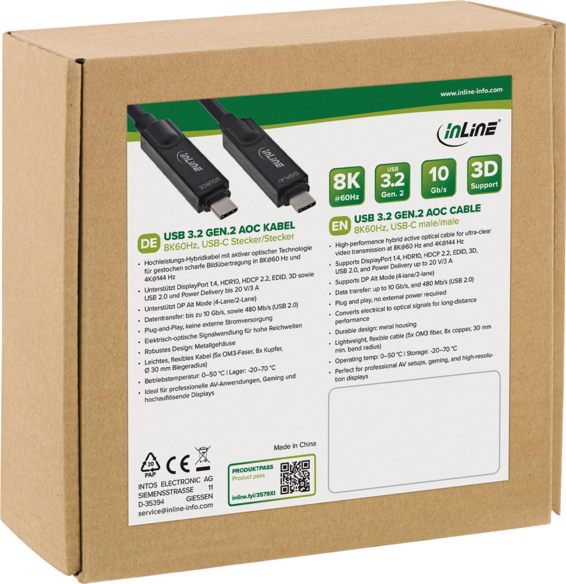 InLine USB 3.2 Gen.2 AOC Kabel - USB-C Stecker/Stecker 8K60Hz 60W - schwarz - 7,5m (35797I)